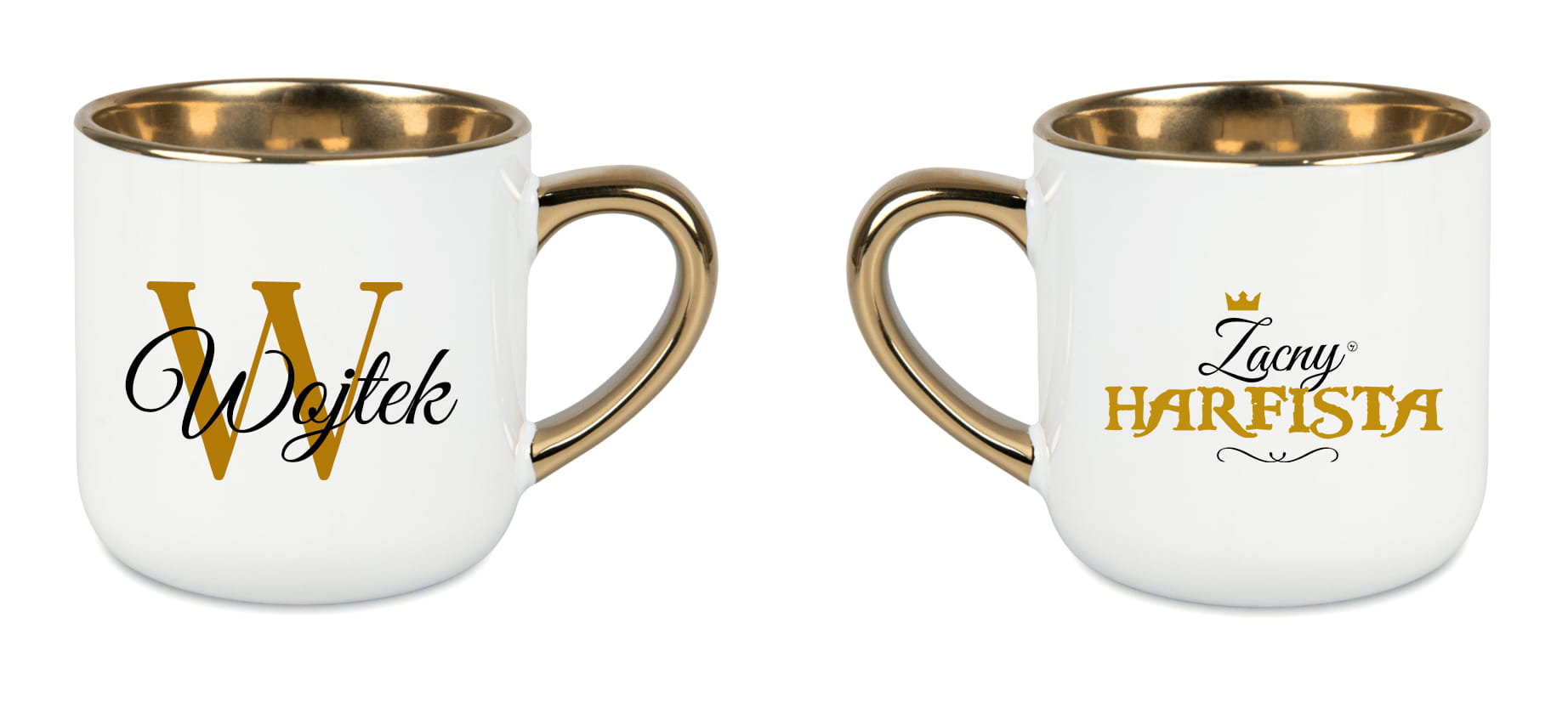 To biały, ceramiczny, elegancki kubek o pojemności 400 ml, ze złotym rantem i uchwytem, dostępny z napisem „Zacna harfistka” lub „Zacny harfista” oraz możliwością personalizacji imieniem. Można go dodatkowo zamówić w ozdobnym opakowaniu z kokardą.