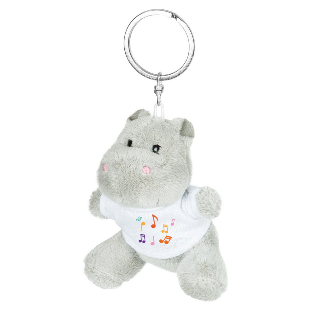 - Breloczek - pluszowy hipopotam białą koszulką z nutkami