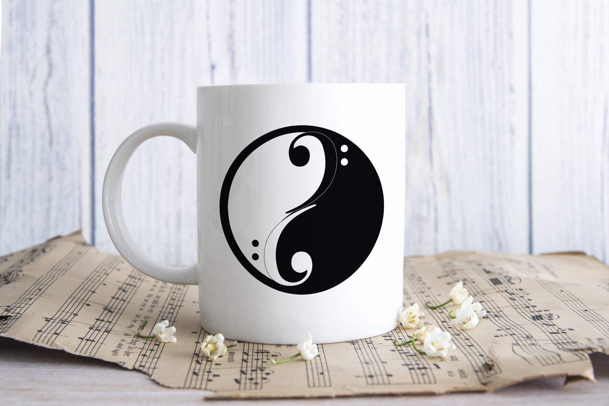 Kubek muzyczny, który jest super prezentem dla każdego. Klucz basowy - yin i yang