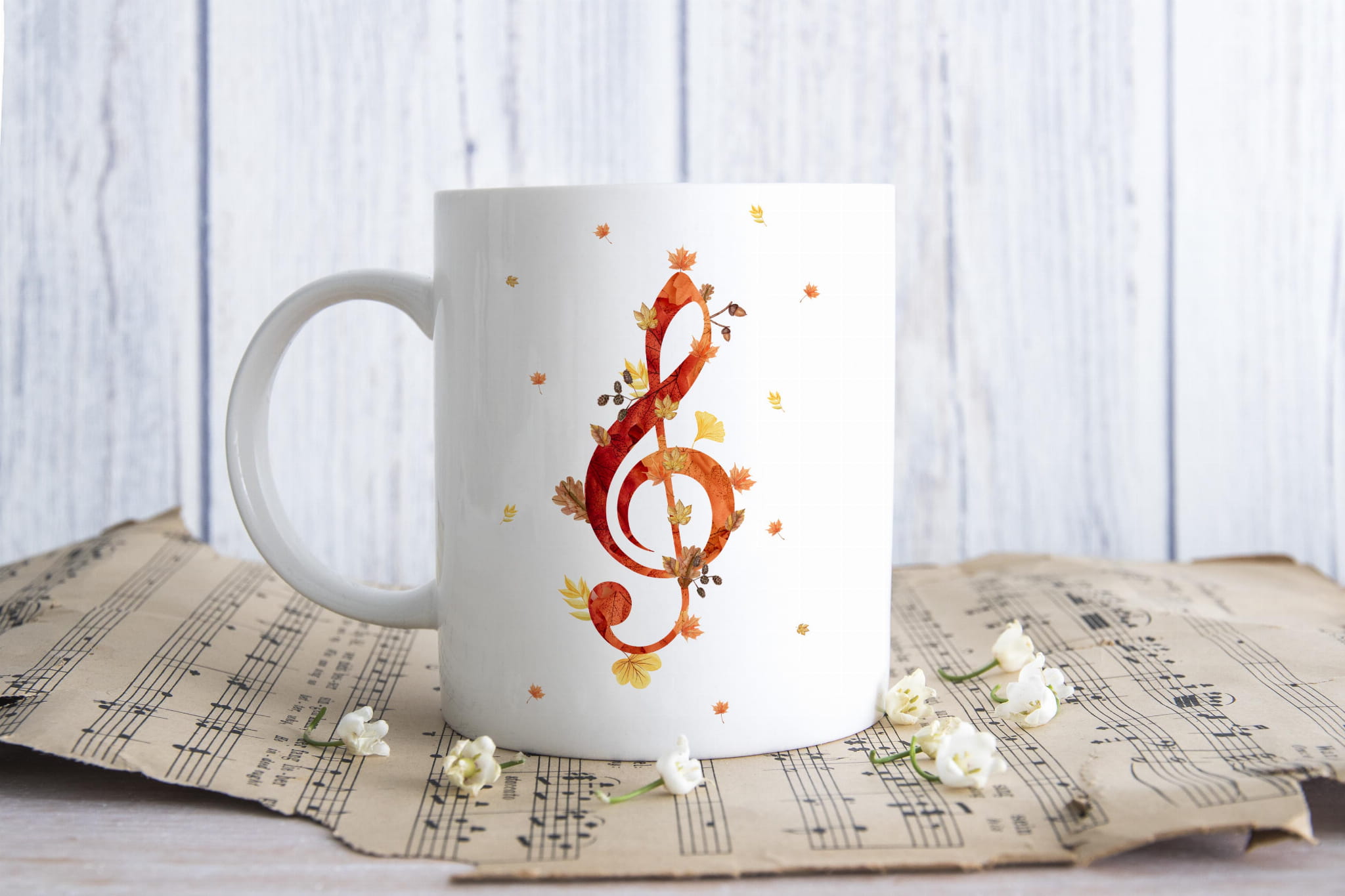 Kubek muzyczny, który jest super prezentem dla każdego. Klucz wiolinowy - Jesień