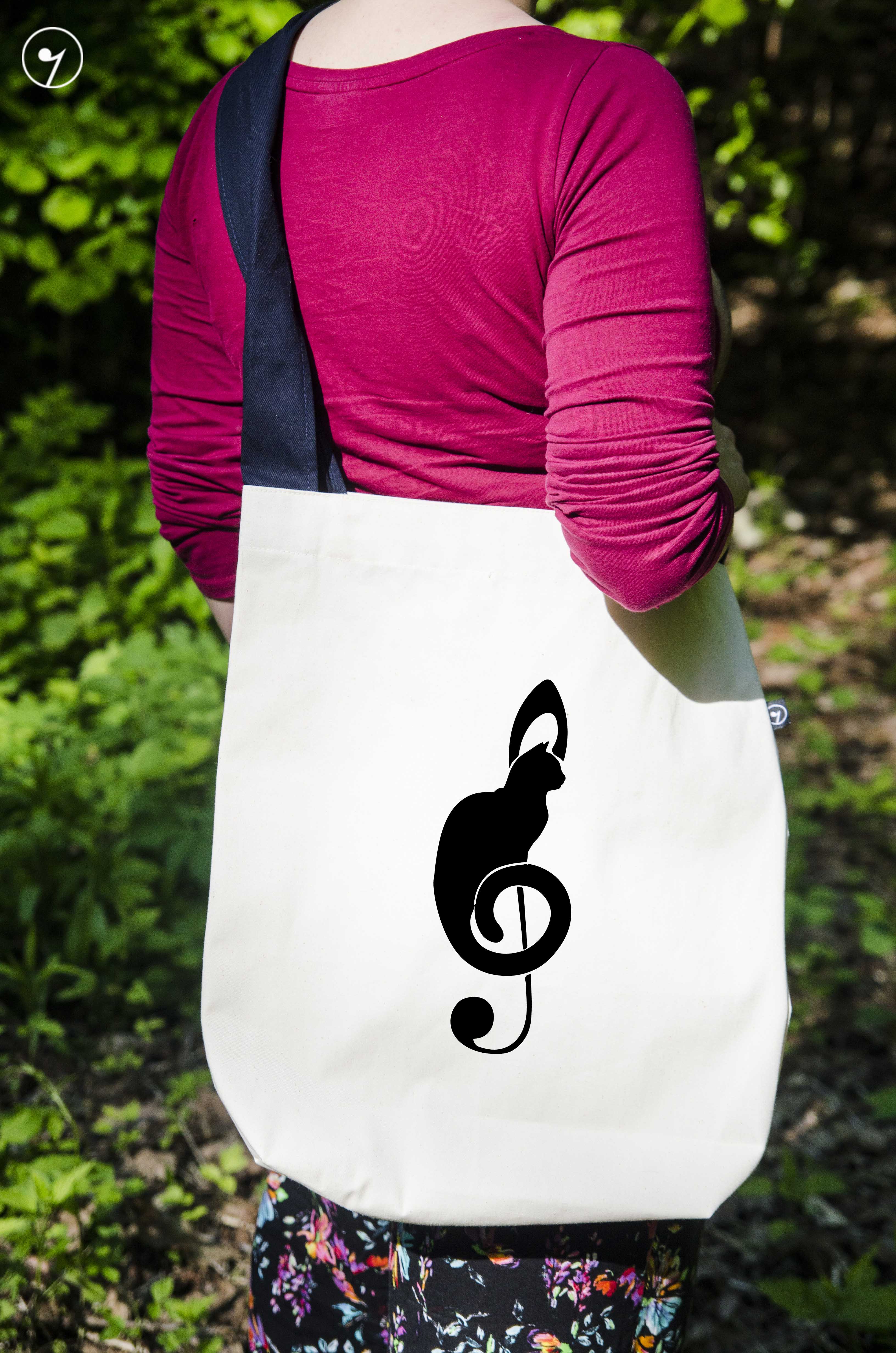 Torba muzyczna, kot - klucz wiolinowy.