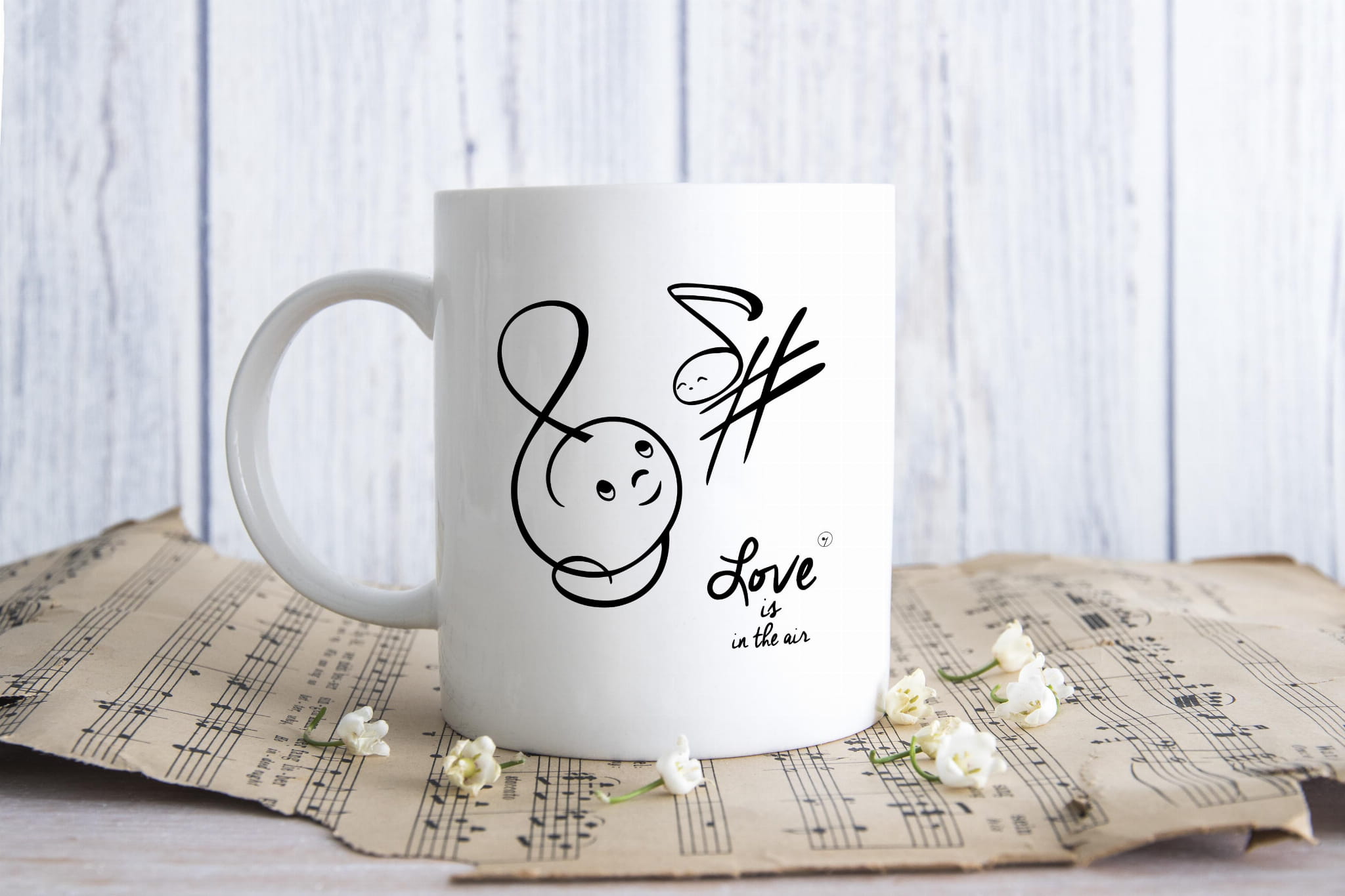 Kubek muzyczny, który jest super prezentem dla każdego. Klucz wiolinowy - Ósemka - Love is in the air