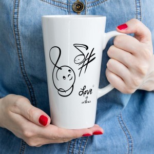 Kubek ceramiczny latte 300ml i 450ml. Klucz wiolinowy - Ósemka - Love is in the air - Kubek latte