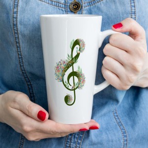 Kubek ceramiczny latte 300 oraz 450 ml ze wzorem Klucz wiolinowy - Ptak