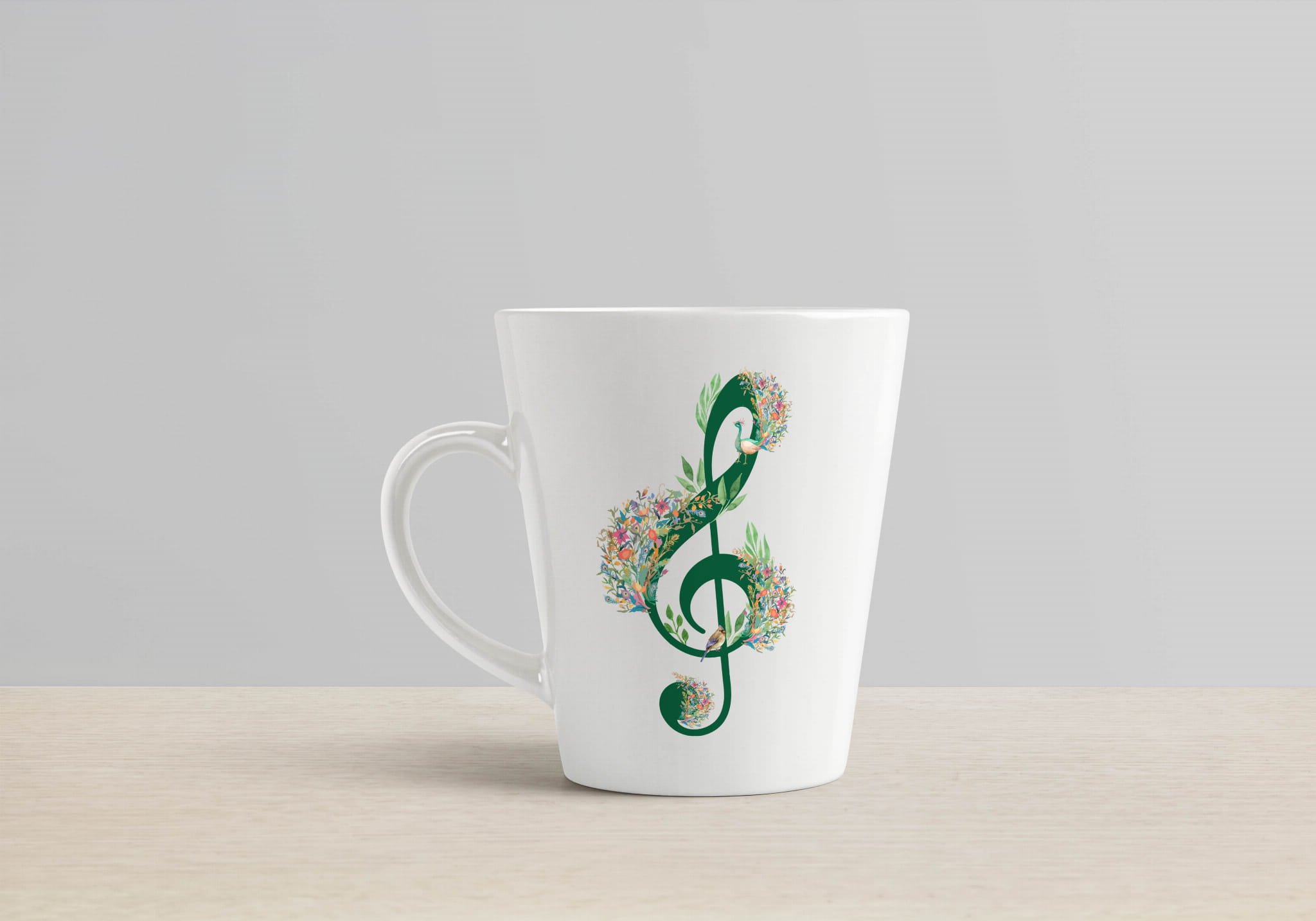 Klucz wiolinowy - Ptak - Kubek latte