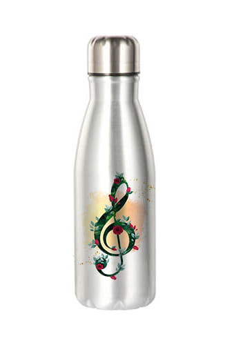 Klucz wiolinowy - Róże 2 - Aluminiowa butelka na wodę - Muzyczna butelka na wodę