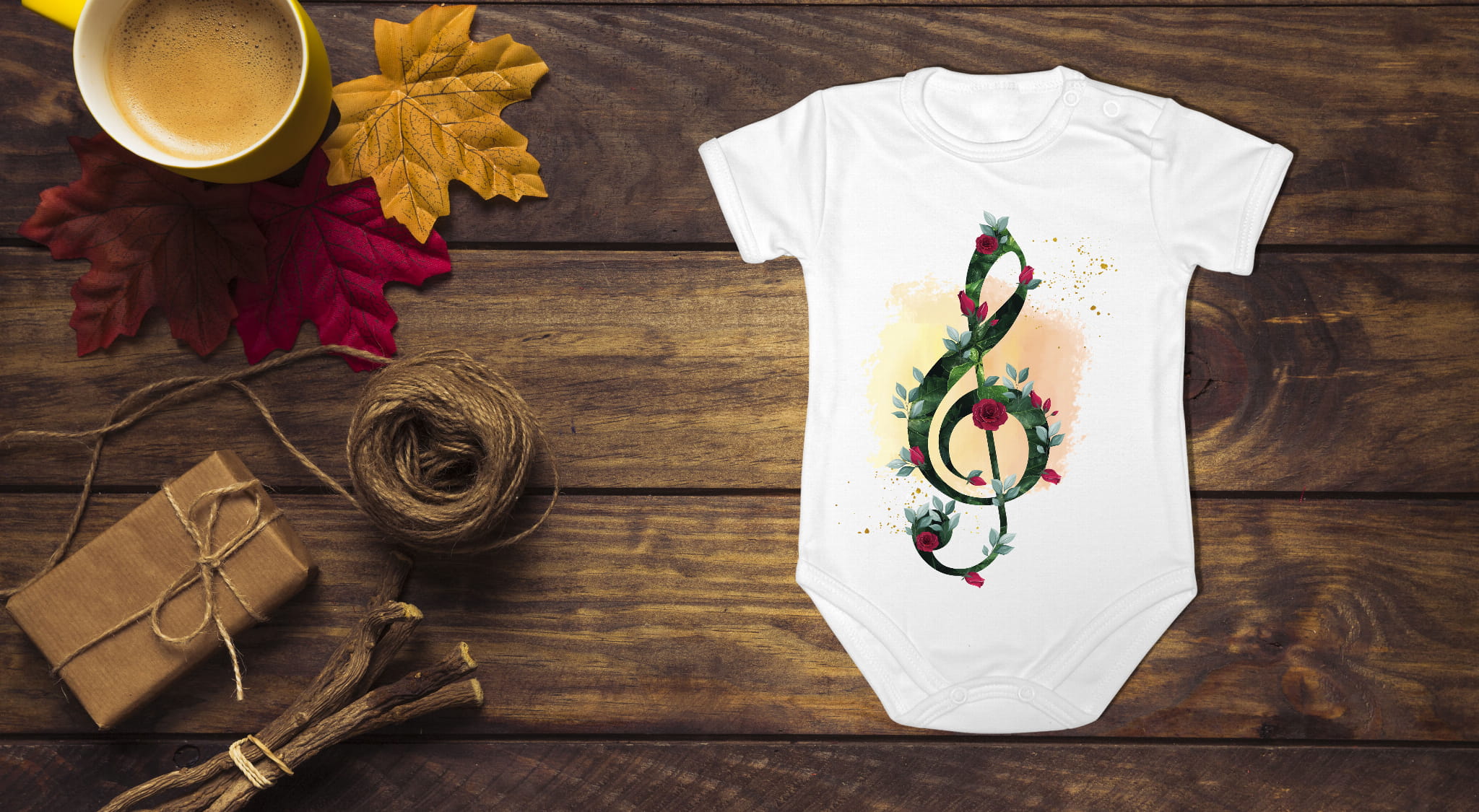 Body z krótkim i długim rękawem, wykonane z 100%- procentowej, miękkiej dzianiny bawełnianej w całości wykonane zostało w Polsce. Klucz wiolinowy - kwiaty.