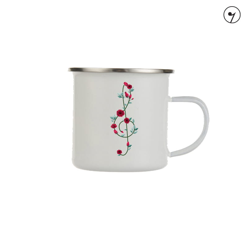 Klucz wiolinowy - Róże - Kubek emaliowany