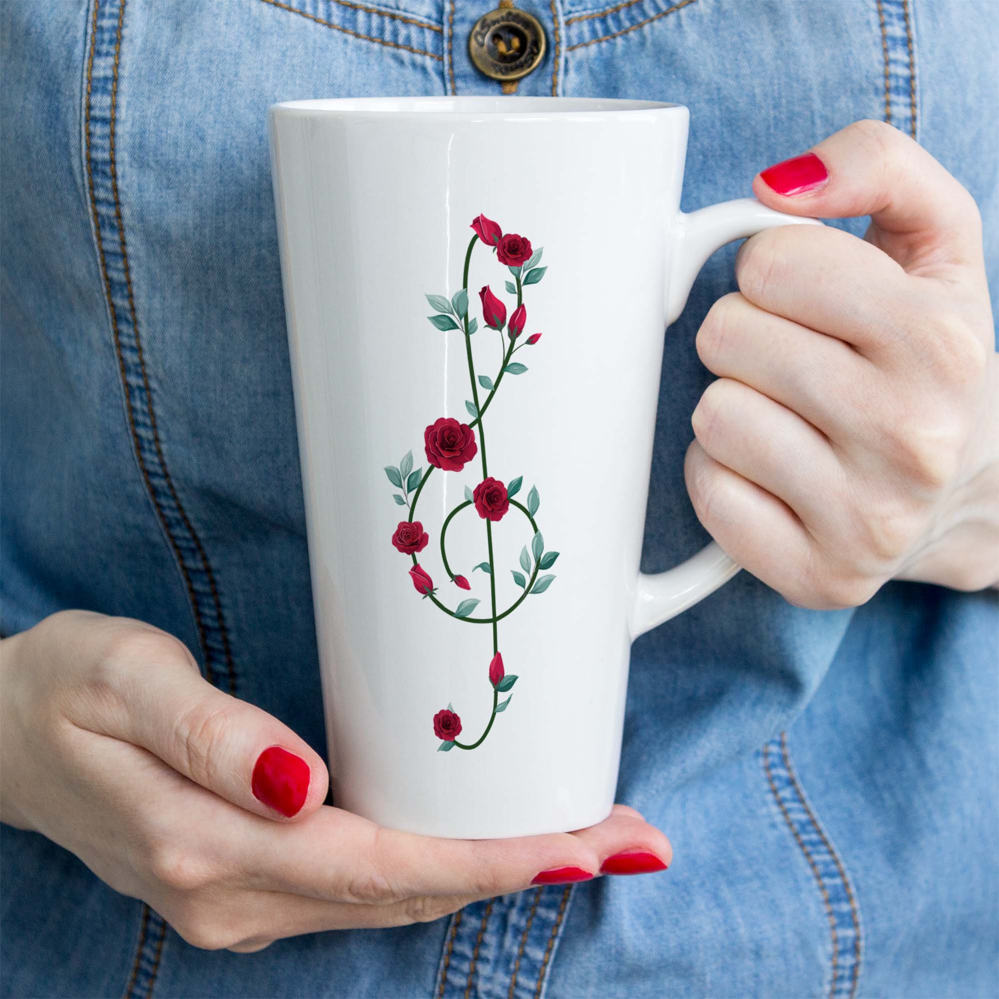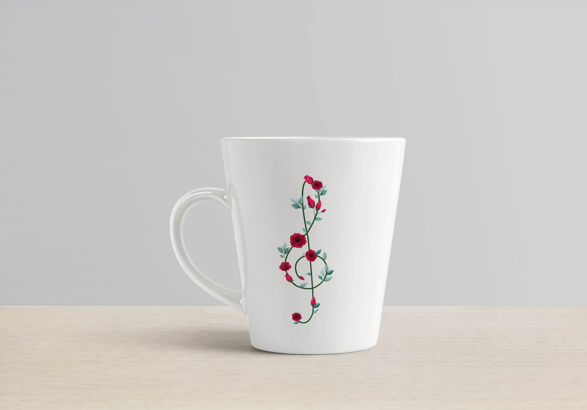 Kubek klucz wiolinowy - Róże - Kubek latte