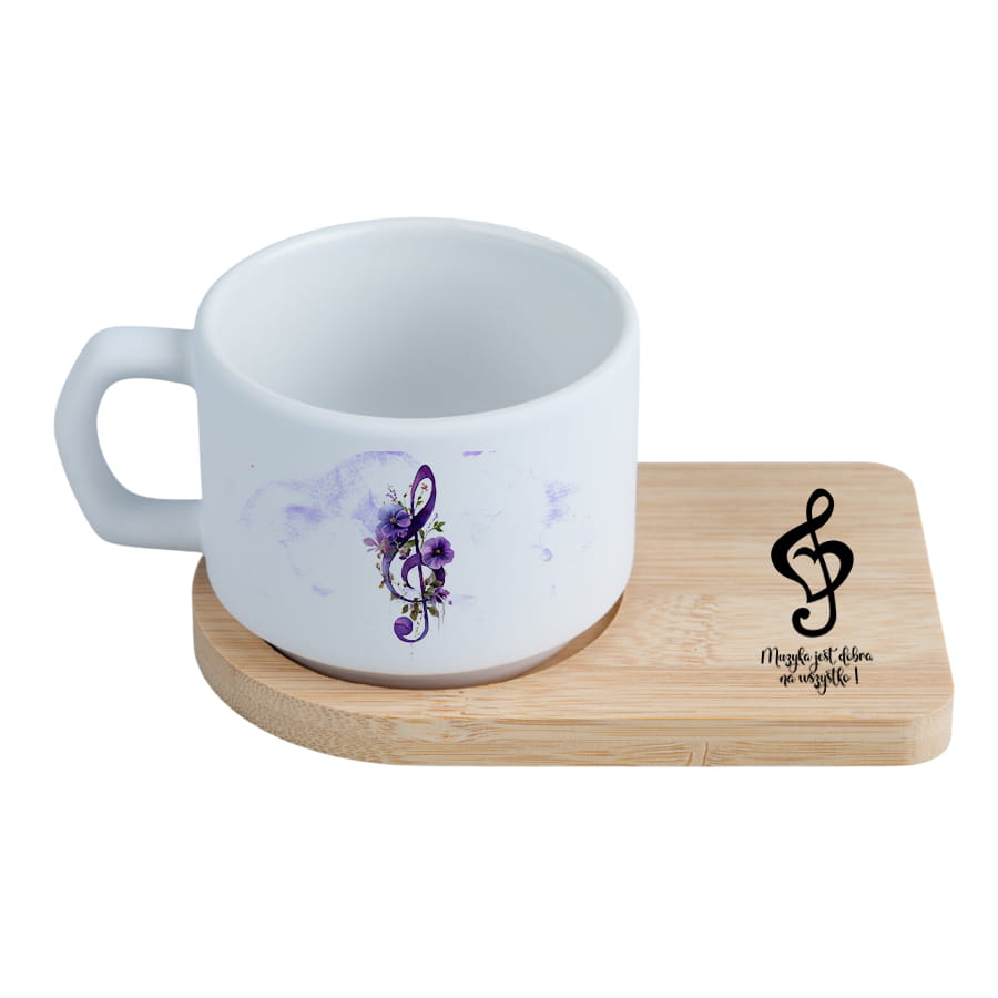 Klucz wiolinowy fiołki - Muzyka jest dobra na wszystko - Grawer / Personalizacja - Filiżanka z bambusową podstawą