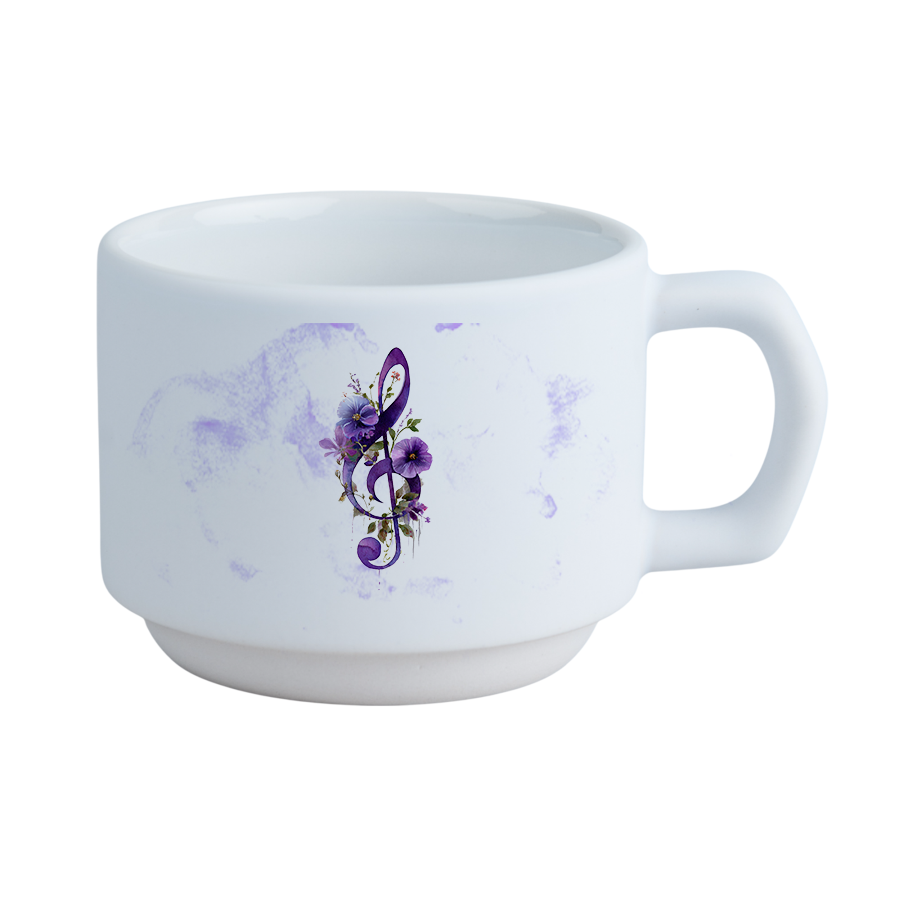 Filiżanka ceramiczna z kluczem wiolinowym - fiołki.