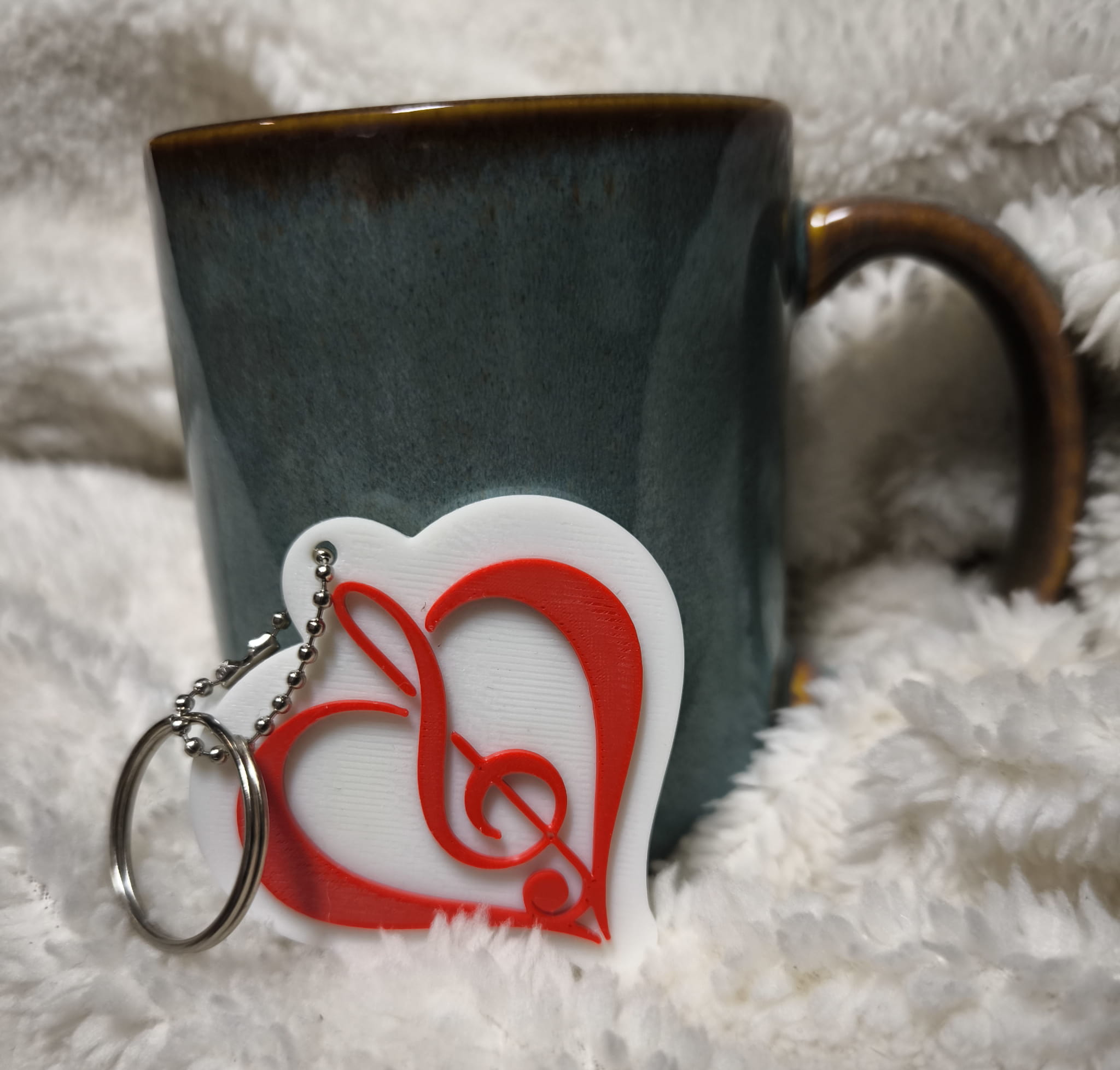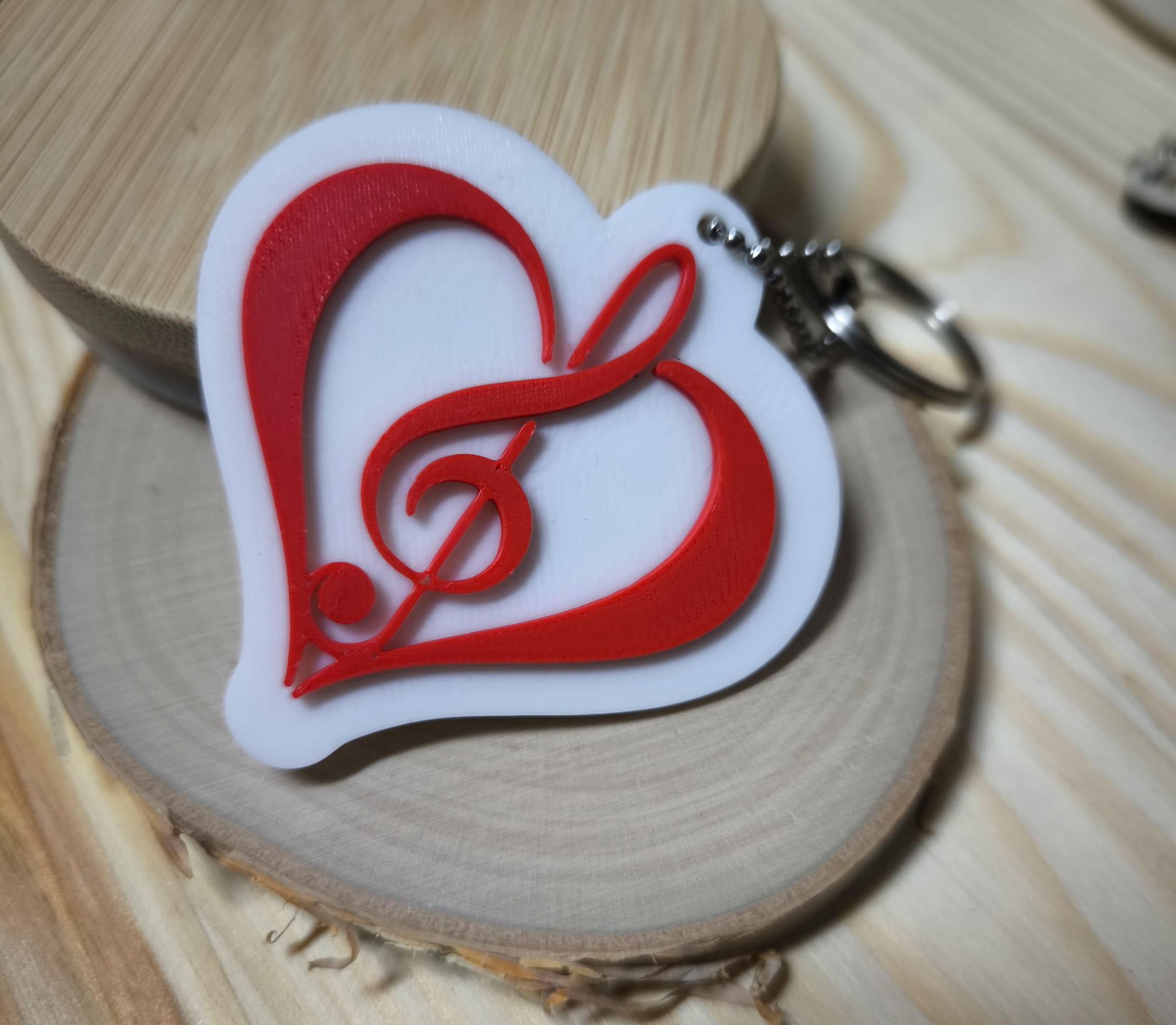 Klucz wiolinowy serce - Walentynki - Prezent dla muzyka - Brelok 3d