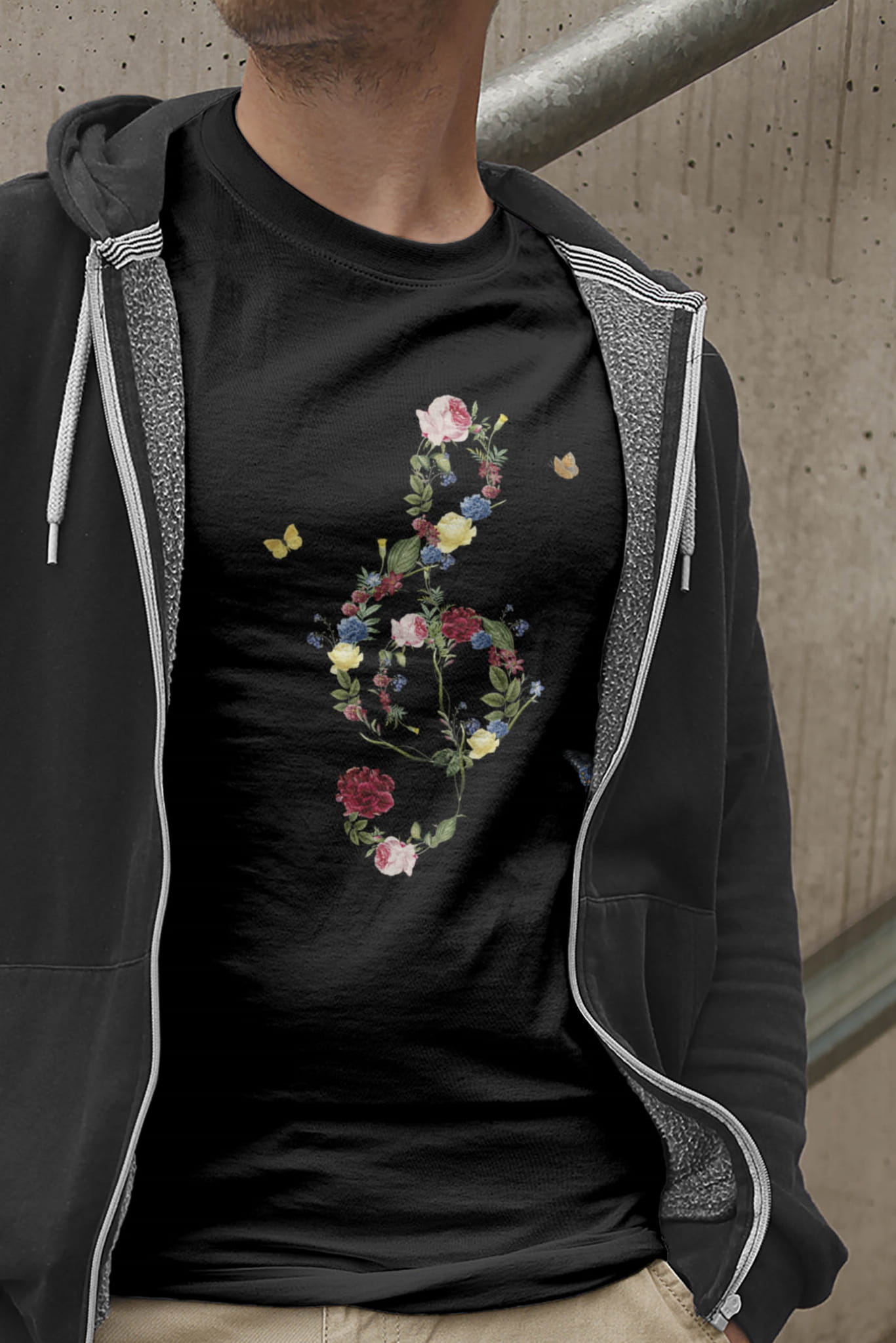 Koszulka, Klucz wiolinowy wiosna - Kwiaty - Motyle
