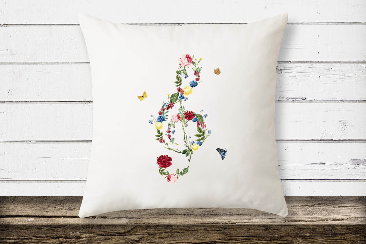 Klucz wiolinowy wiosna - Kwiaty - Motyle - Poduszka