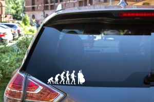 Naklejka na auto - szybę lub karoserię. Kontrabas - Ewolucja kontabasisty - Naklejka na auto
