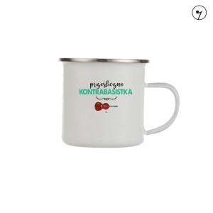 Wzór na kubku - "Kontrabas - Kontrabasistka - Prześliczna kontrabasistka - Prezent dla kontrabasistki - Kubek emaliowany".