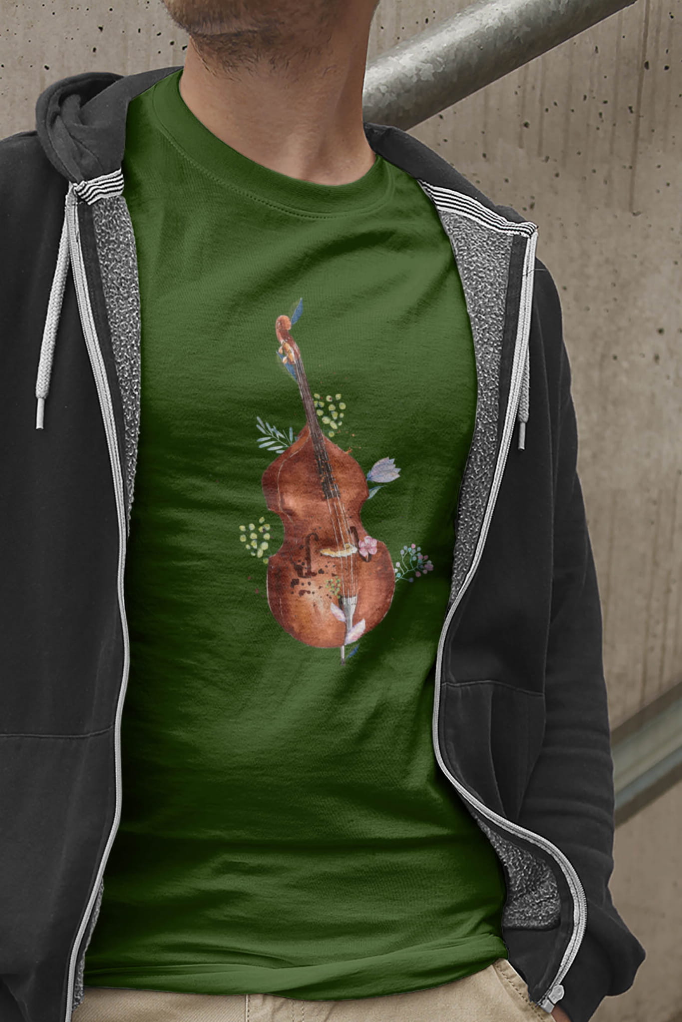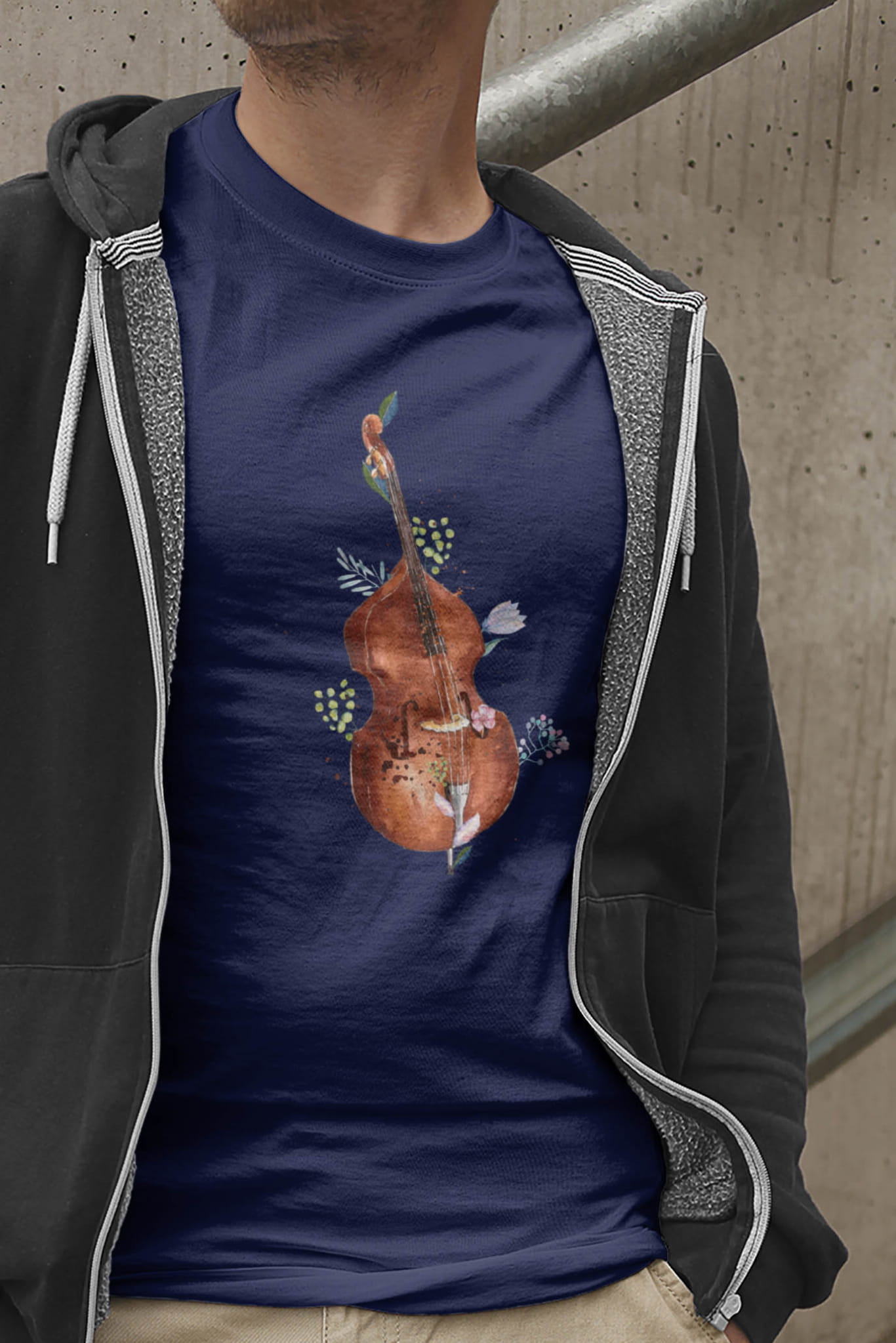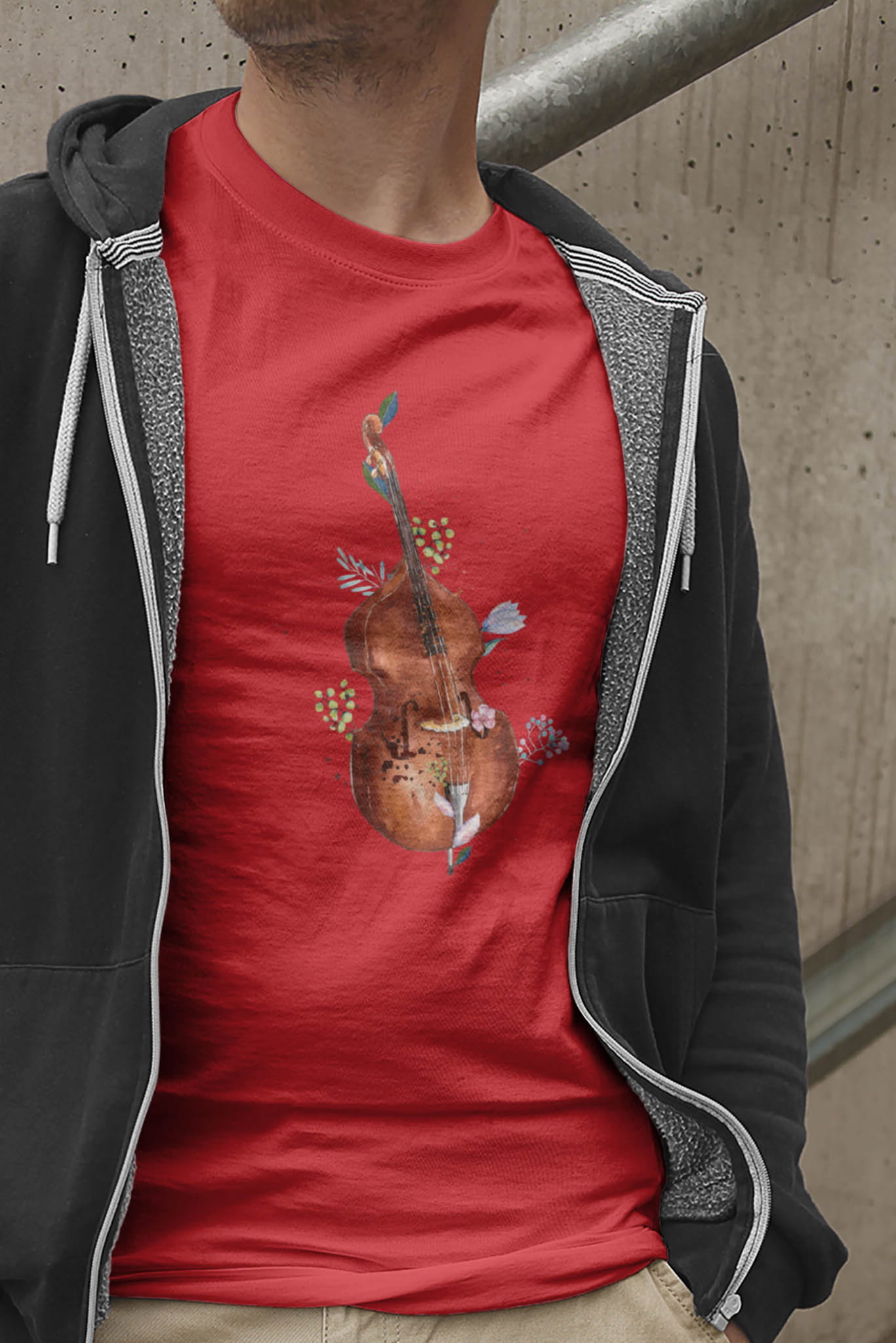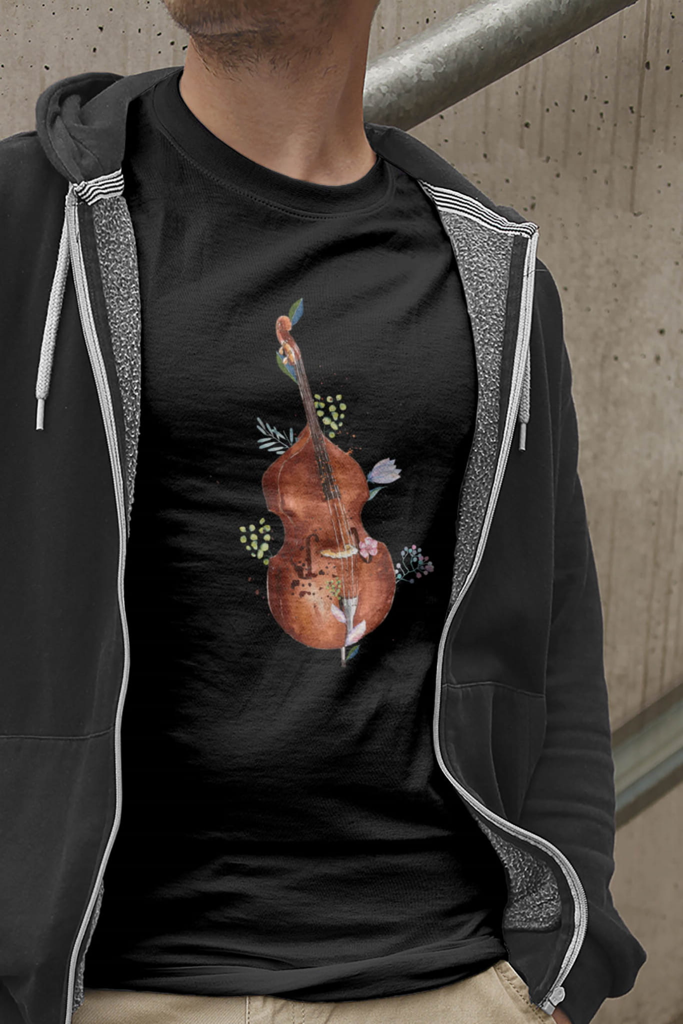 Kontrabas - Kwiaty - Prezent dla kontrabasistki - prezent dla kontrabasisty - Koszulka
