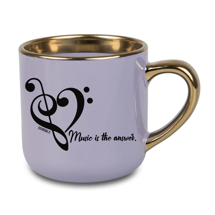 Kubek muzyczny ze złotym rantem - fioletowy - Serce z kluczy - Kubek elegant