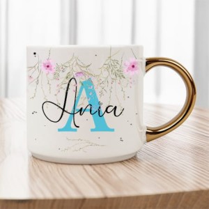 Kubek z imieniem - Kwiaty - Duży kubek ze złotym uchem