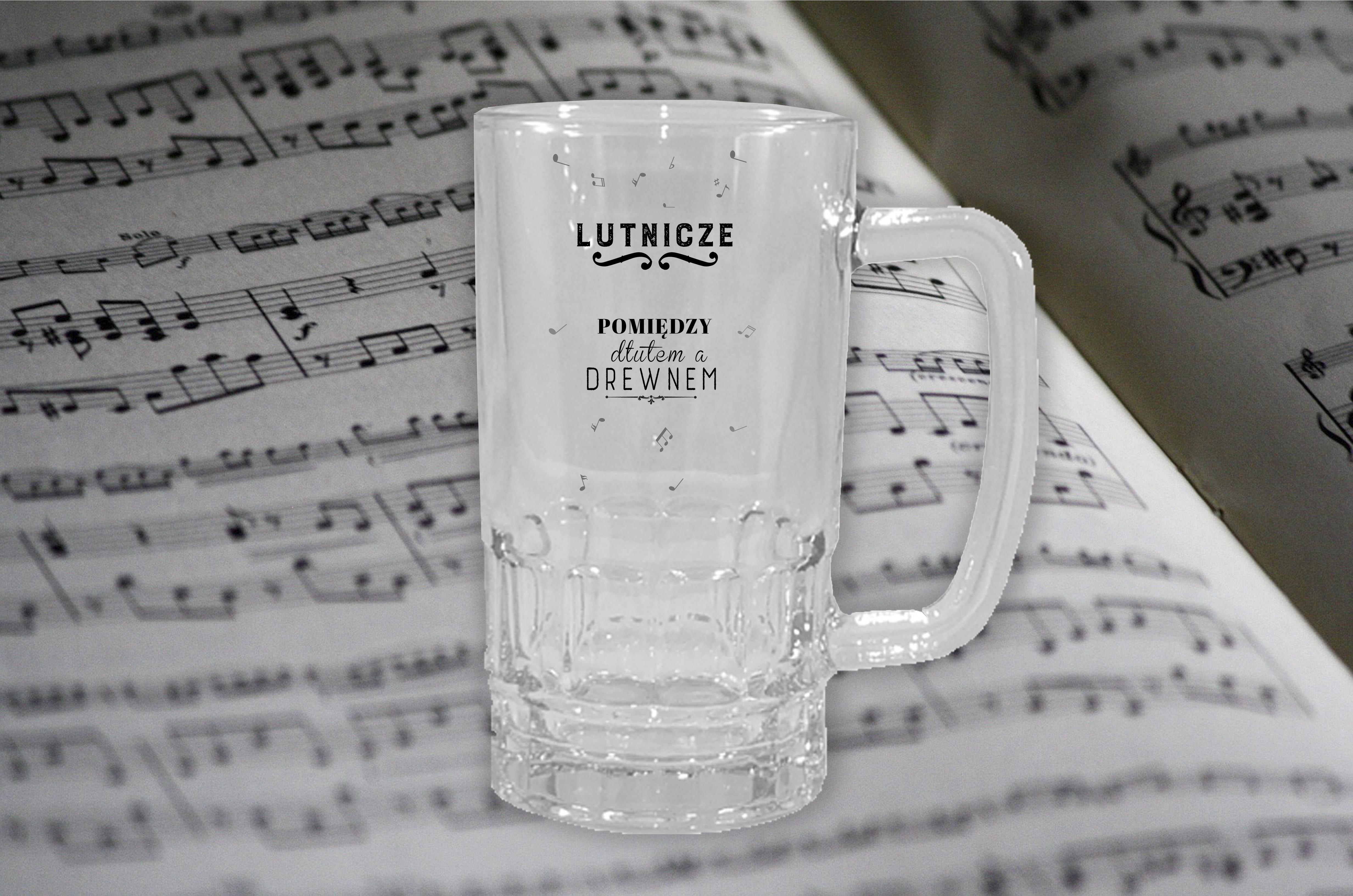 Nadruk czarny, kufel przezroczysty. Lubi mycie ręczne ale raczej nie gardzi też zmywarką.
