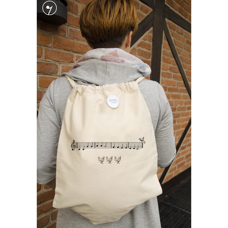 Mocny i solidny worek plecak. Dwa kolory do wyboru - naturalny i czarny. Kura - Kurka - Nutki - Były sobie kurki trzy - Worek plecak