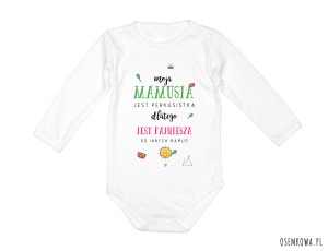 Body z krótkim rękawem i długim rękawem, mamusia perkusistka, wykonane z 100%- procentowej, miękkiej dzianiny bawełnianej w całości wykonane zostało w Polsce.