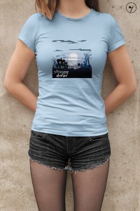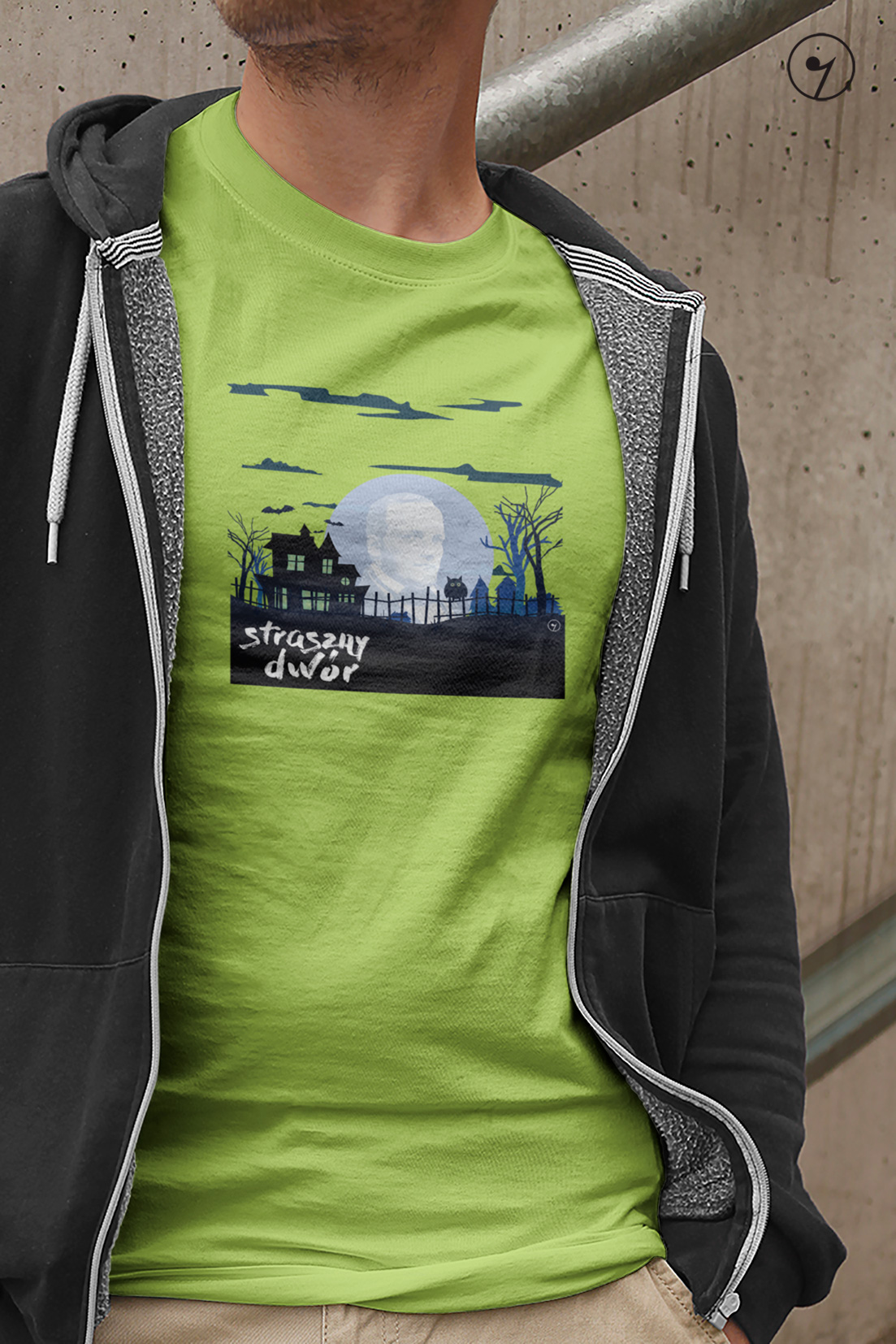 100% bawełna półczesana Ringspun. Wzmocnienie taśmą na szyi.