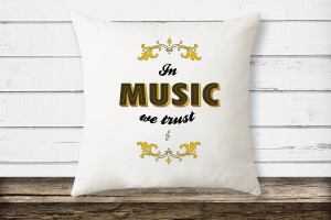 Biała, poduszka ze wzorem - "Music - In music we trust".
