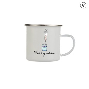 Kubek metalowy, emaliowany z uszkiem, Music is my medicine.