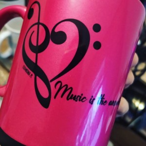 Kubek dla muzyka na kawę. Kubek różowy, Music is the answer.