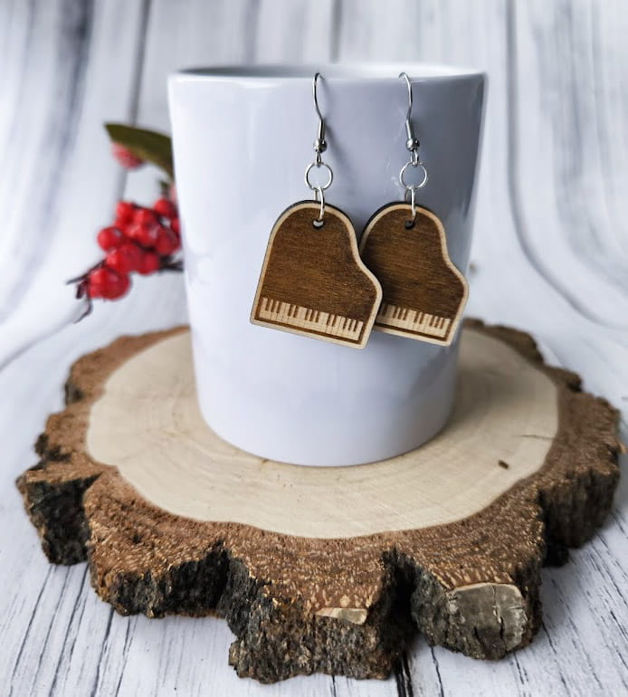 Drewniane kolczyki "Fortepian" – Idealne kolczyki dla muzyczek