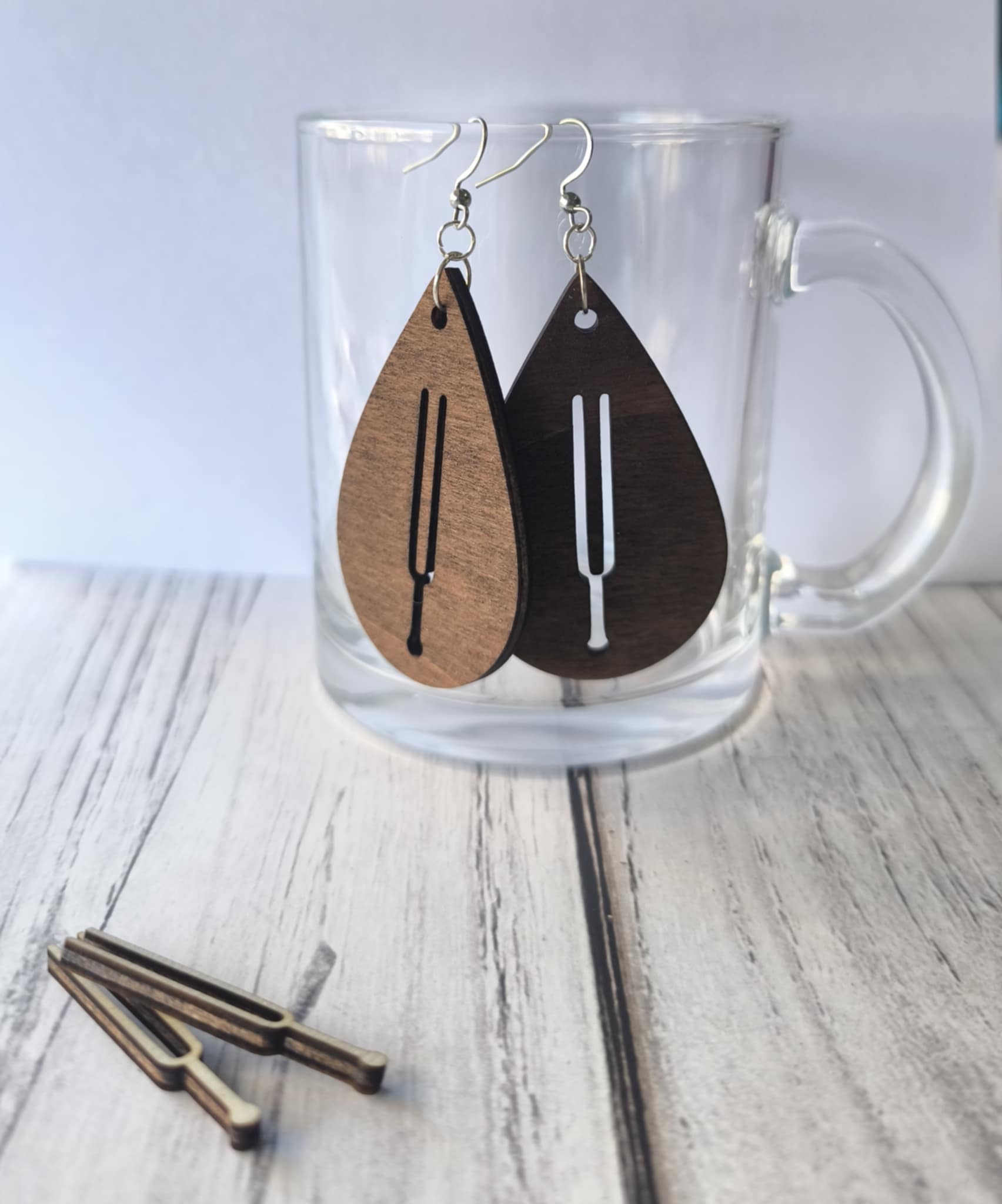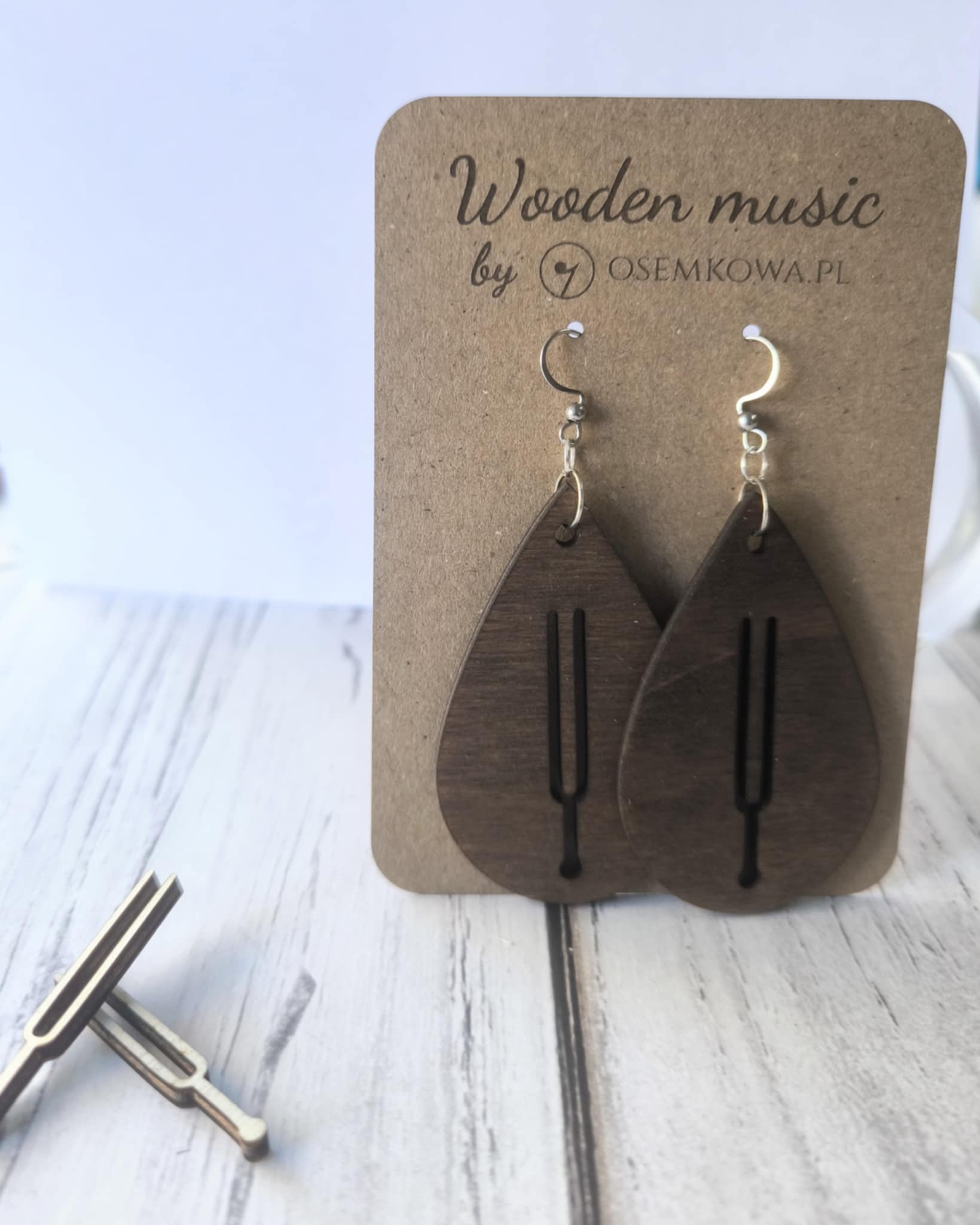 Muzyczne kolczyki - Kamerton - Prezent dla dyrygentki - Kolczyki z drewna - Muzyczna biżuteria - Kolczyki