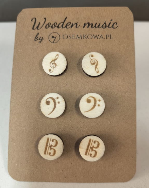 Muzyczne kolczyki - Muzyczne klucze - Zestaw kolczyków z drewna - Muzyczna biżuteria - Kolczyki na sztyfcie