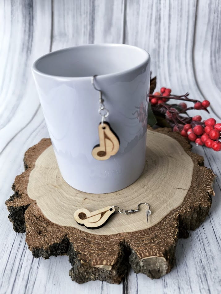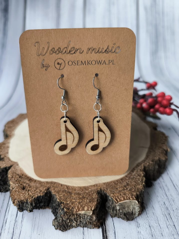 Muzyczne kolczyki - Ósemki - Prezent dla muzyczki - Kolczyki z drewna - Muzyczna biżuteria - Kolczyki