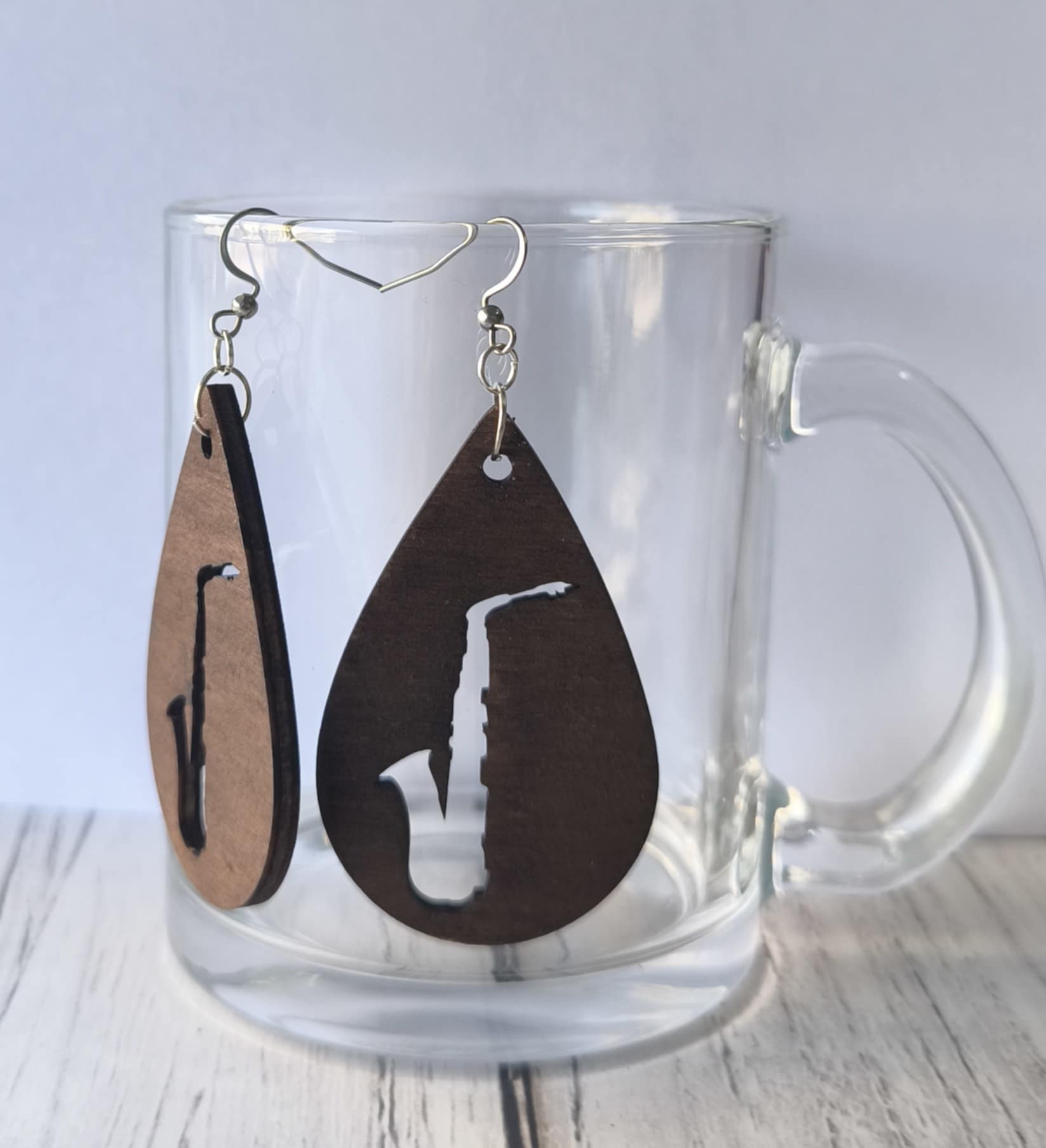 Muzyczne kolczyki - Saksofon - Prezent dla saksofonistki - Kolczyki z drewna - Muzyczna biżuteria - Kolczyki