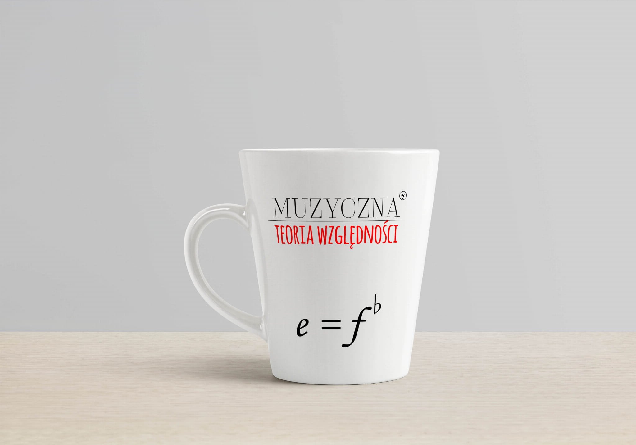 Kubek ceramiczny latte o pojemności 300ml lub 450ml. Wzór - "Muzyka - Teoria względności - Muzyczna teoria".