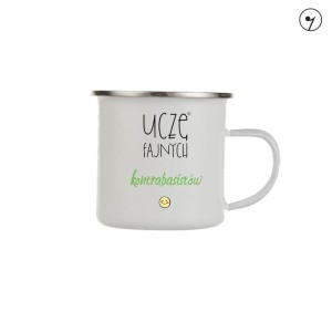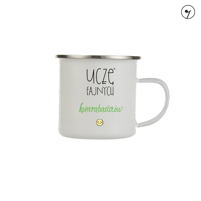Emaliowany kubek muzyczny, który jest super prezentem dla każdego nauczyciela kontrabasu, a w szczególności dla tego, który uczy fajnych kontrabacistów. Kubki o pojemność 300 ml. Kubek koloru białego ze srebrnym rantem, metalowy, emaliowany z uszkiem.