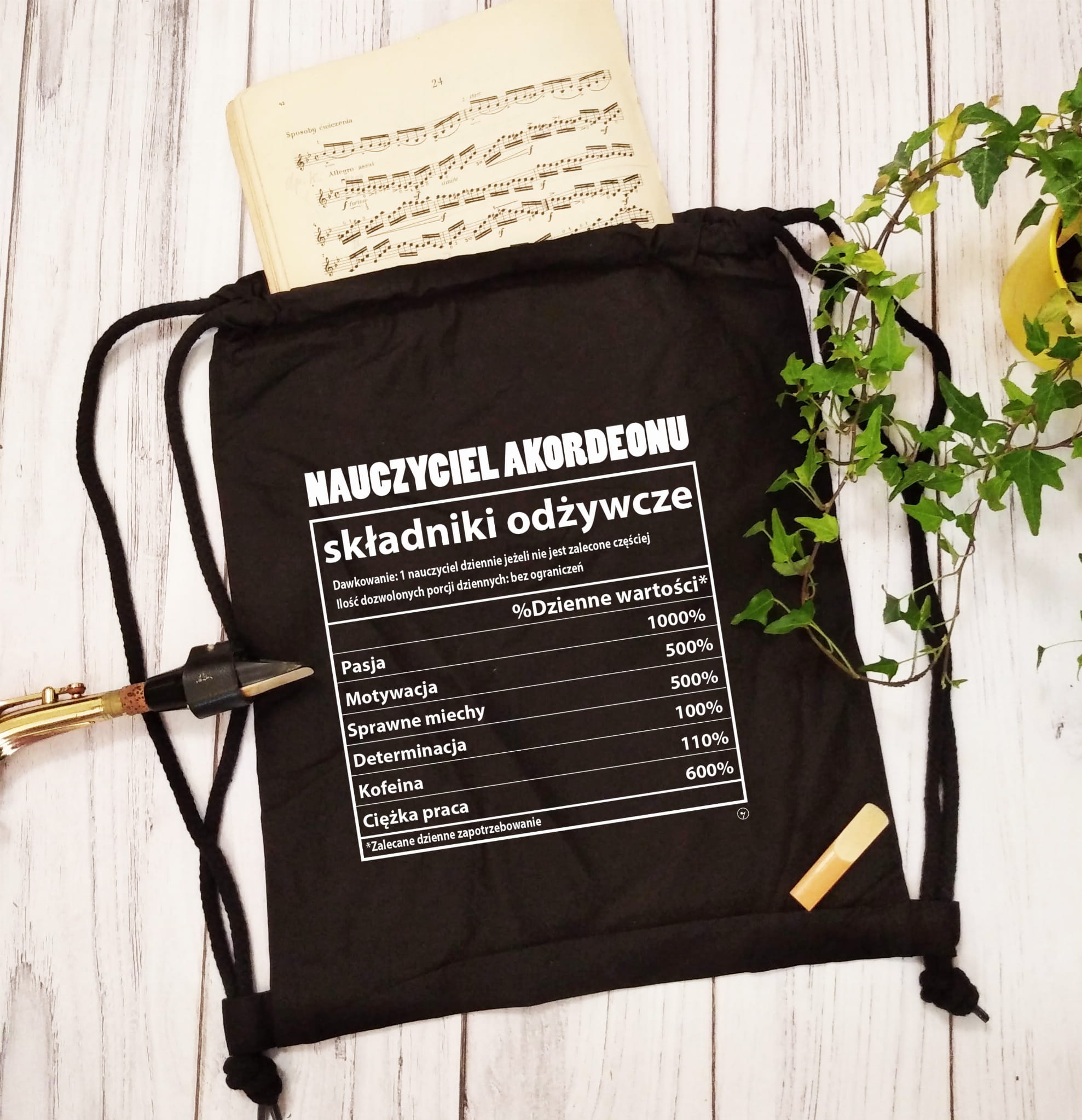 Mocny i solidny worek plecak. Nauczyciel akordeonu - Składniki odżywcze