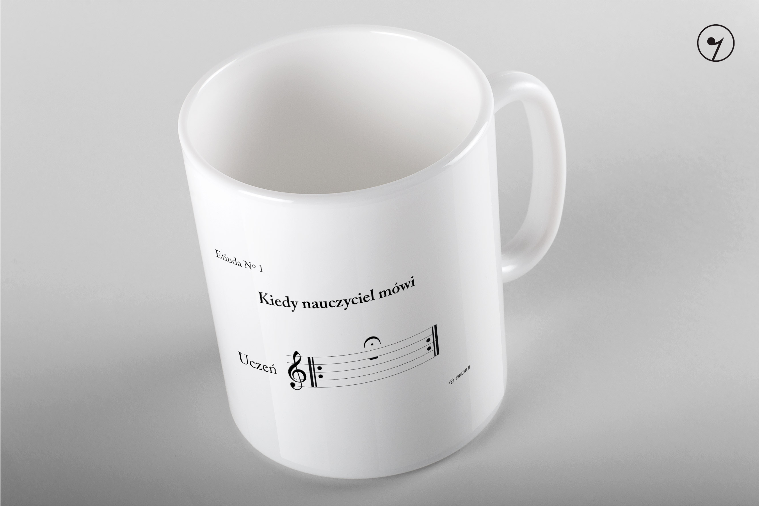 Kubek dla muzyka na kawę. Nauczyciel mówi.