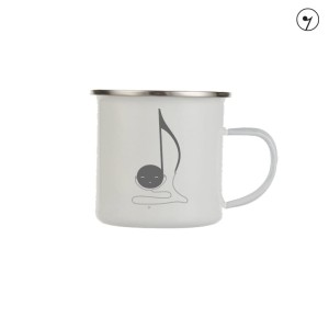 Kubek metalowy, emaliowany z uszkiem, Nutka - Nutka ze słuchawkami.