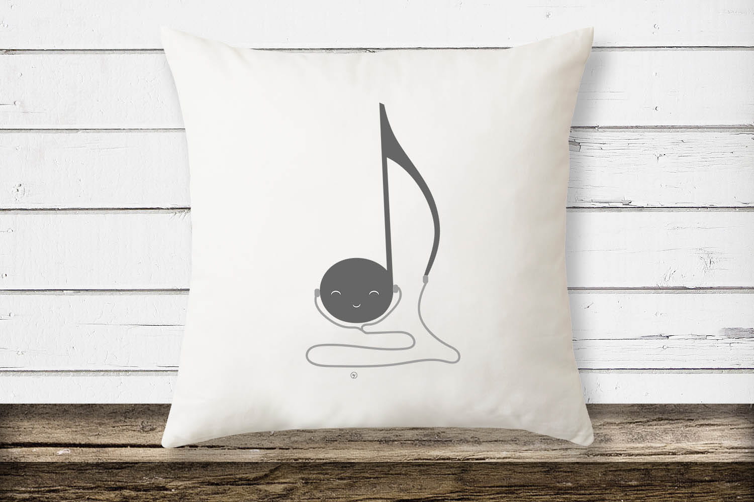 Biała poduszka z miękkiej mikrofibry. Nutka - Nutka ze słuchawkami