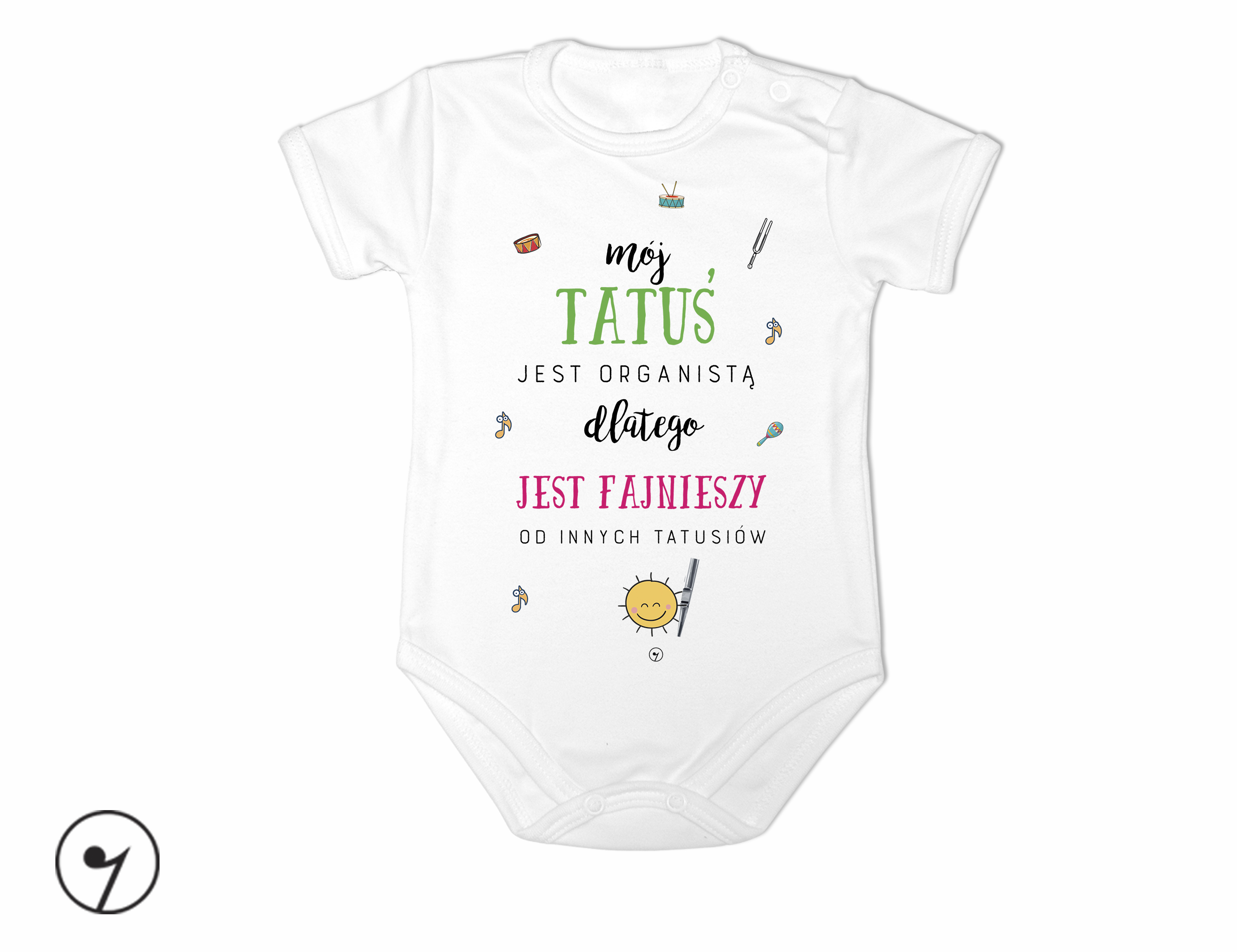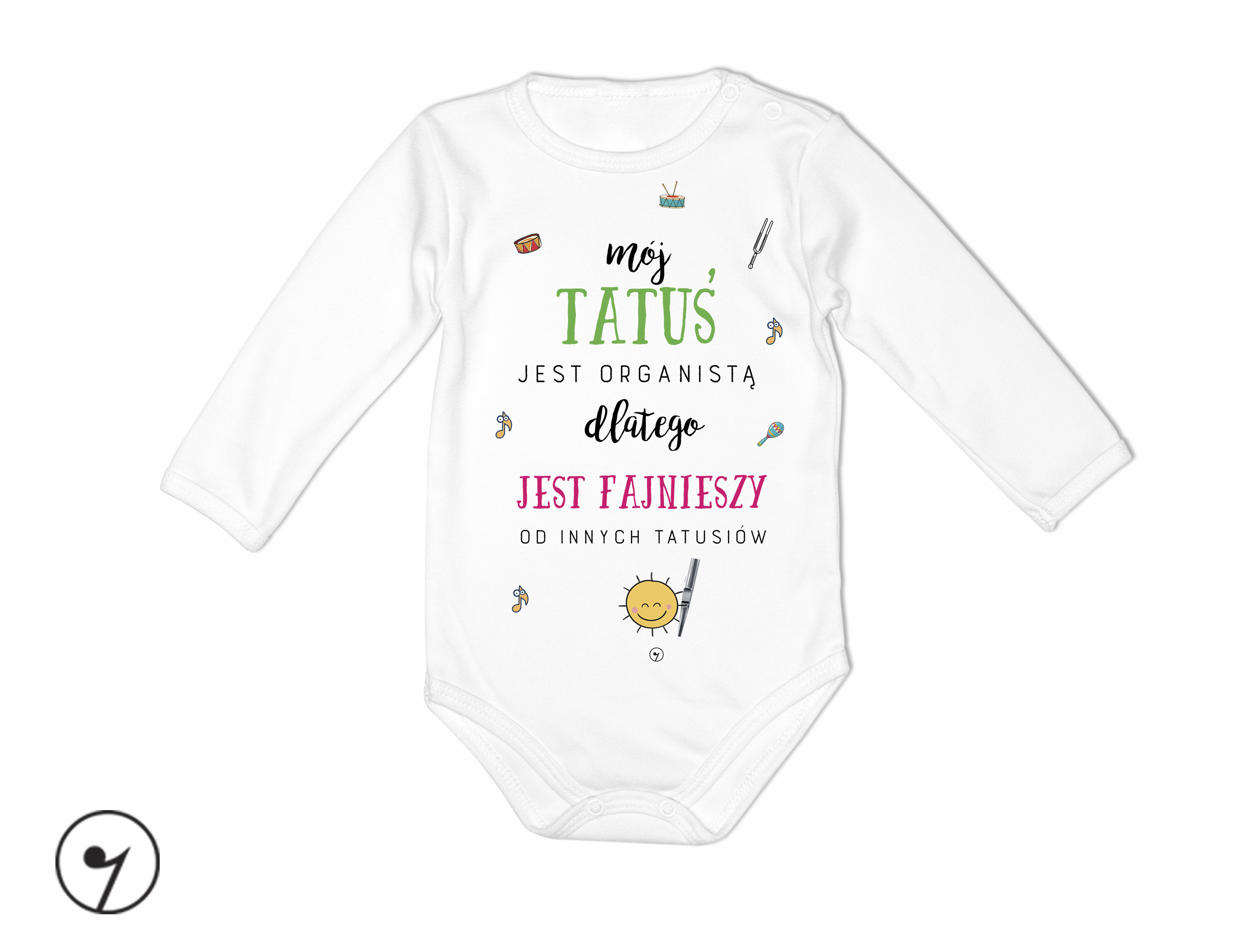 Body z krótkim i długim rękawem, wykonane z 100%- procentowej, miękkiej dzianiny bawełnianej. Tatuś organista, mamusia organistka.
