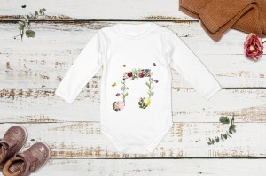 Body z krótkim rękawem i długim rękawem, Ósemki wiosna - Kwiaty, wykonane z 100%- procentowej, miękkiej dzianiny bawełnianej w całości wykonane zostało w Polsce.