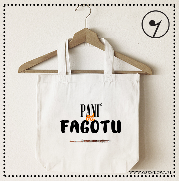 Torba na nuty i inne muzyczne szpargały. Może się przydać również na zakupy czy też ciężką teczkę z racji na mocny materiał (to znacznie mocniejsza torba, niż zwykle są sprzedawane). Dla Pani i Pana od fagotu.