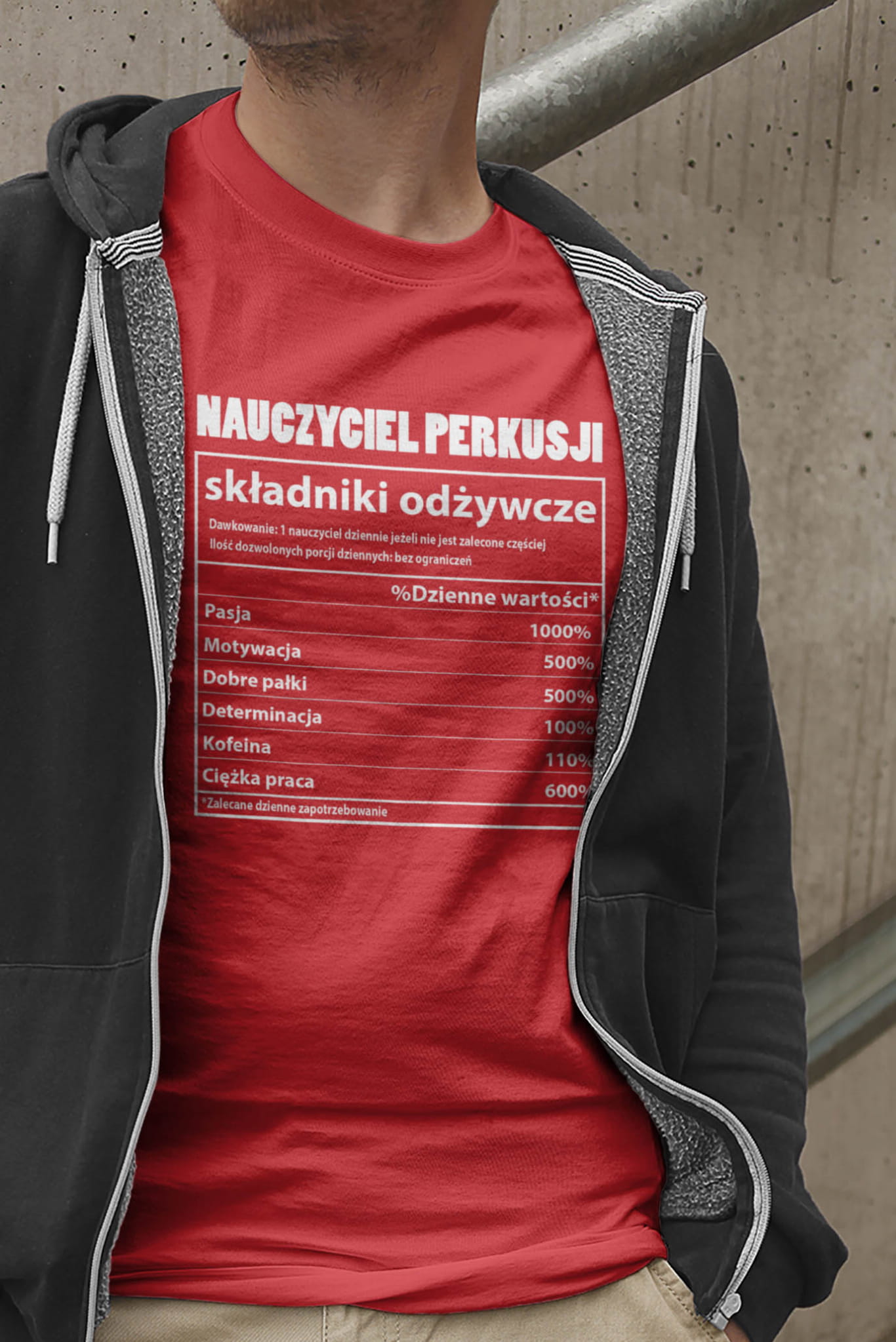 Koszulka dla muzyków. Nauczyciel perkusji - Składniki odżywcze - Koszulka