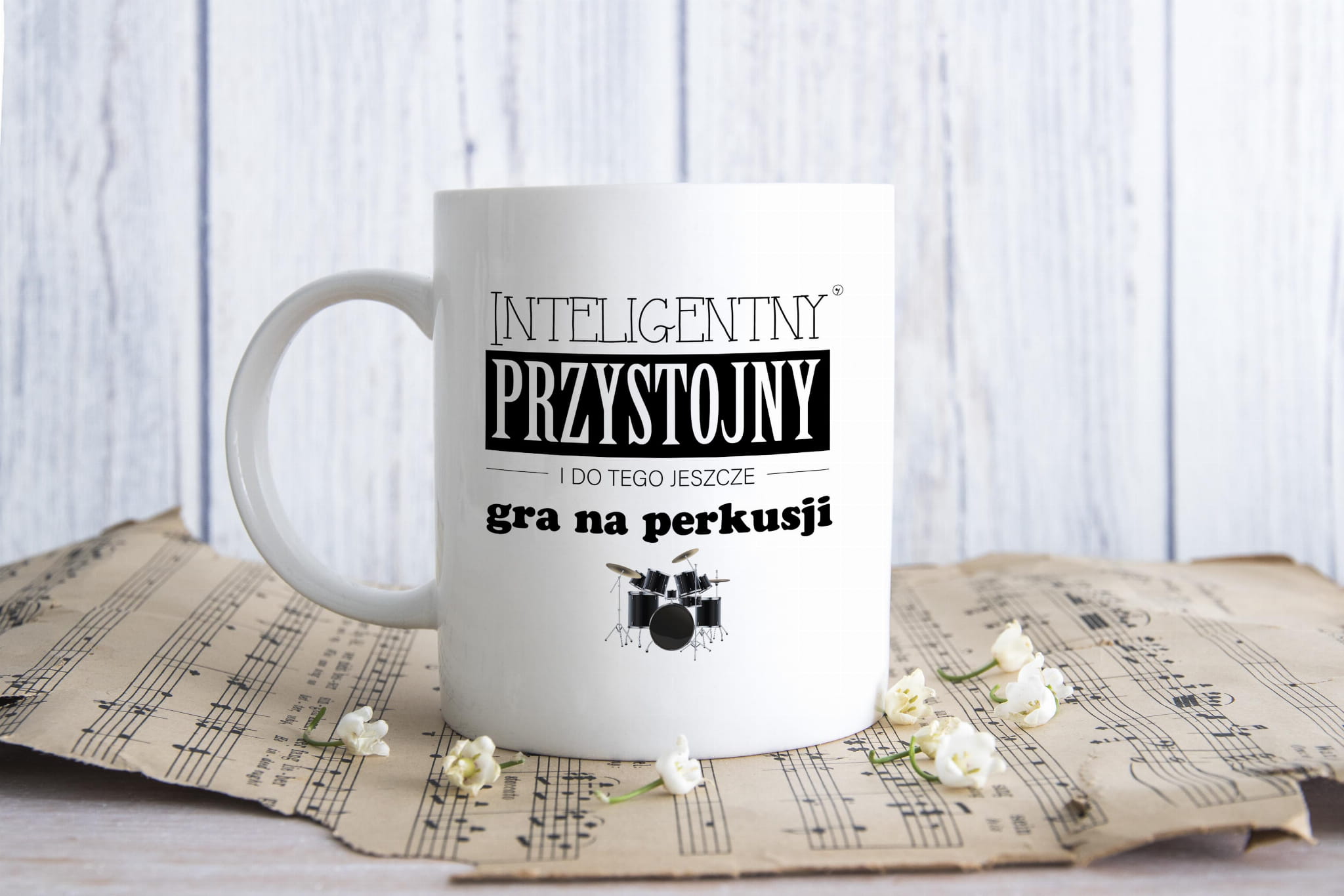 Kubek ceramiczny 330ml, dla perkusisty. Przystojny i gra na perkusji
