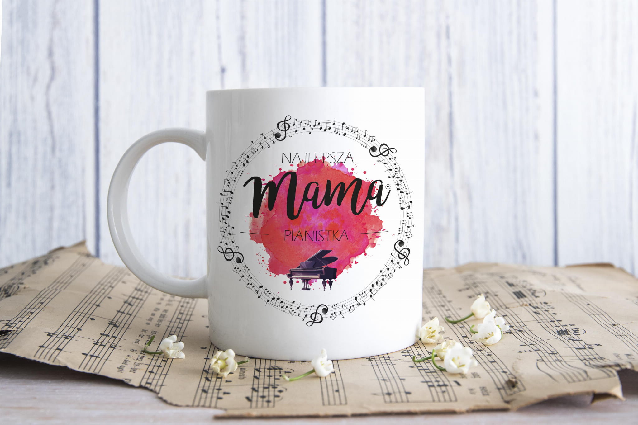 Kubek dla muzyka na kawę. Lub dla lubiących muzykę na herbatę :) Pianino - Fortepian - Mama pianistka - Kubek ceramiczny