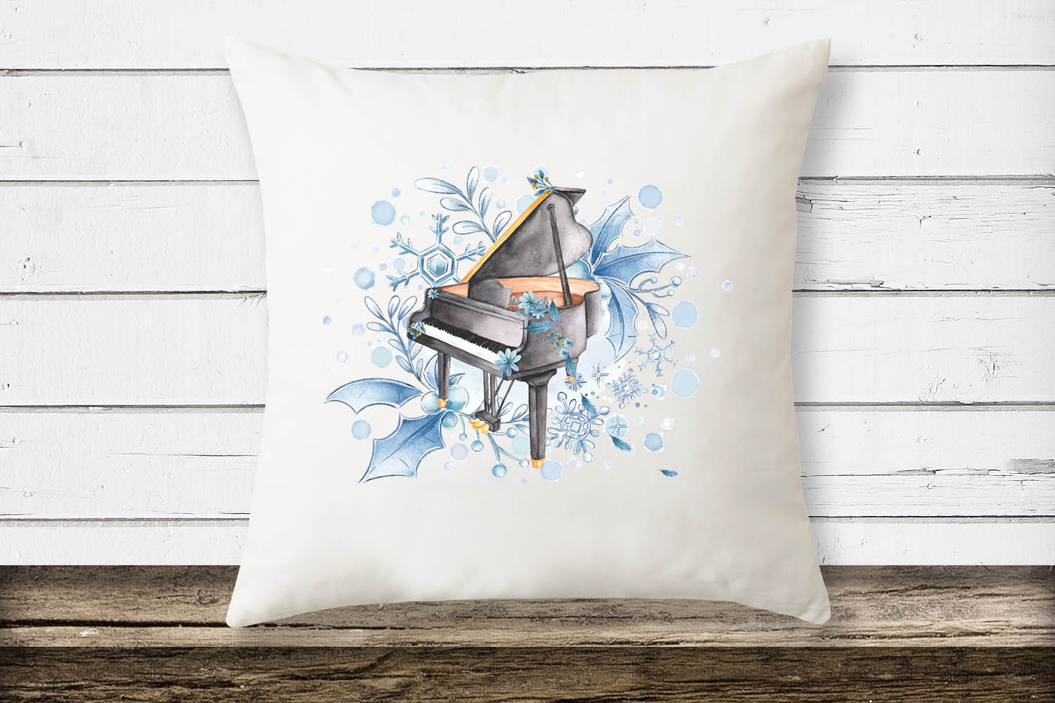 Biała poduszka z miękkiej mikrofibry, fortepian Zima.