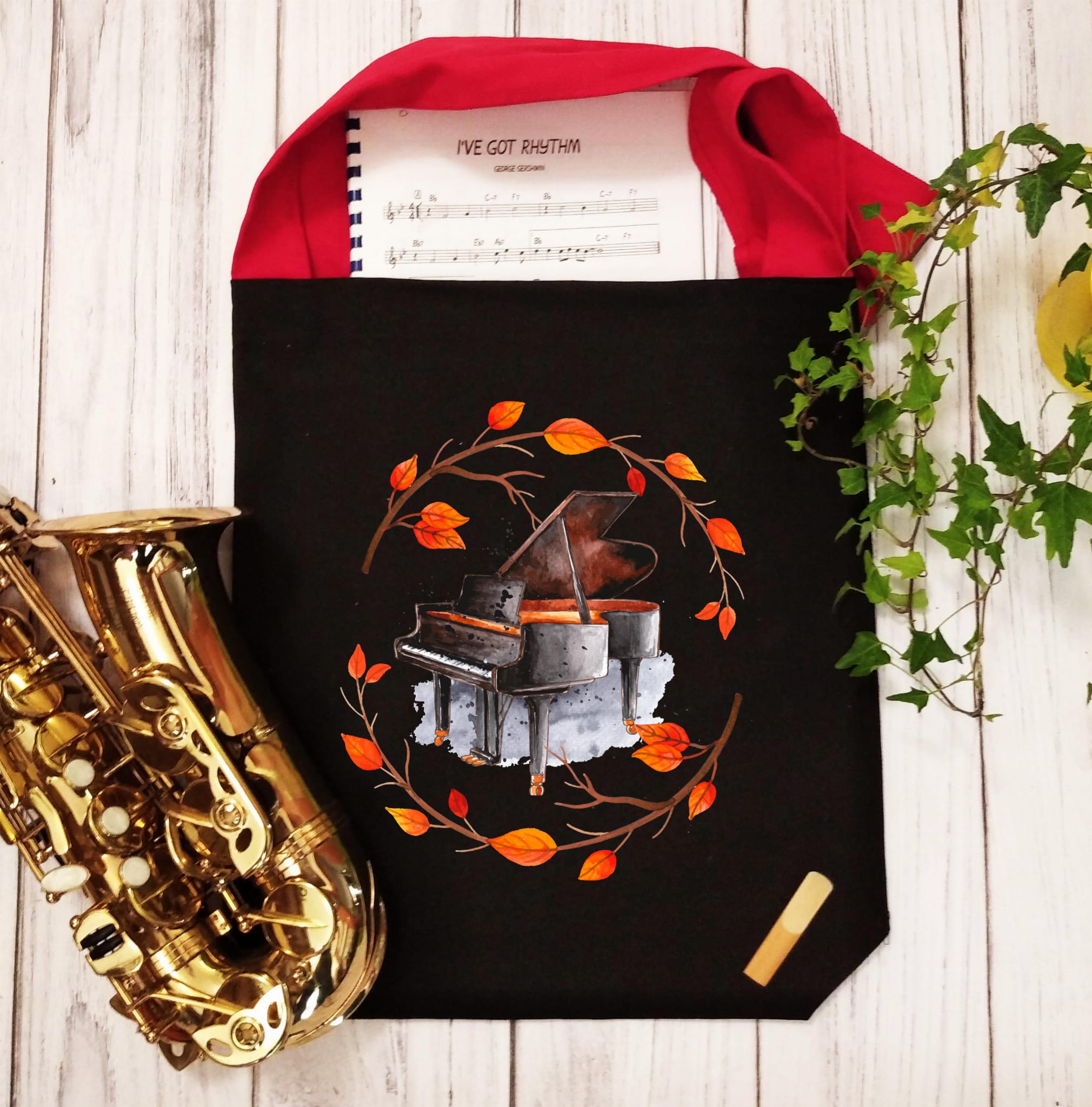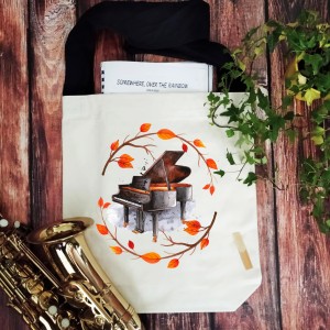 Torba muzyczna, fortepian z motywem jesieni.