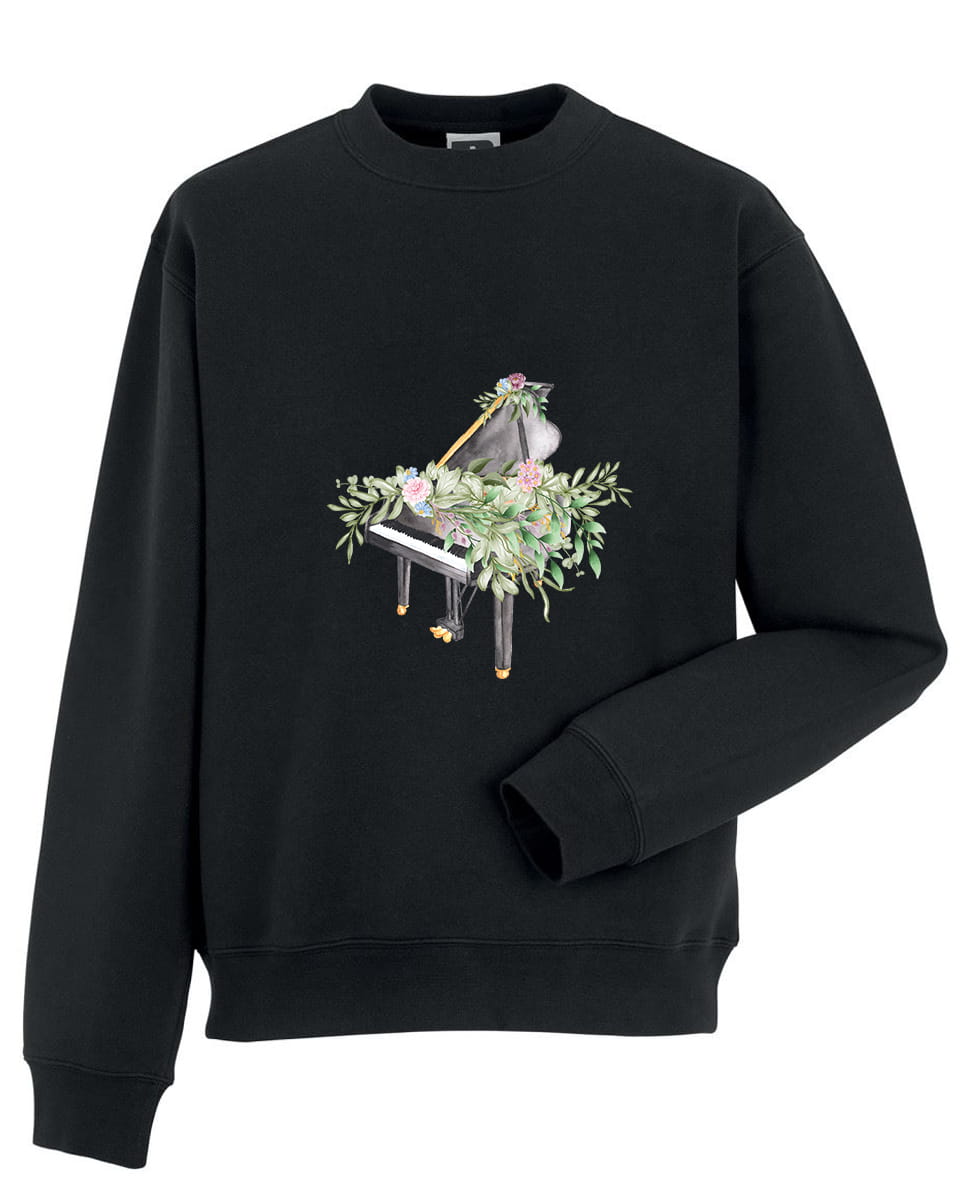 Ciepła bluza, rozmiar uniwersalny i damski. Fortepian - kwiaty.